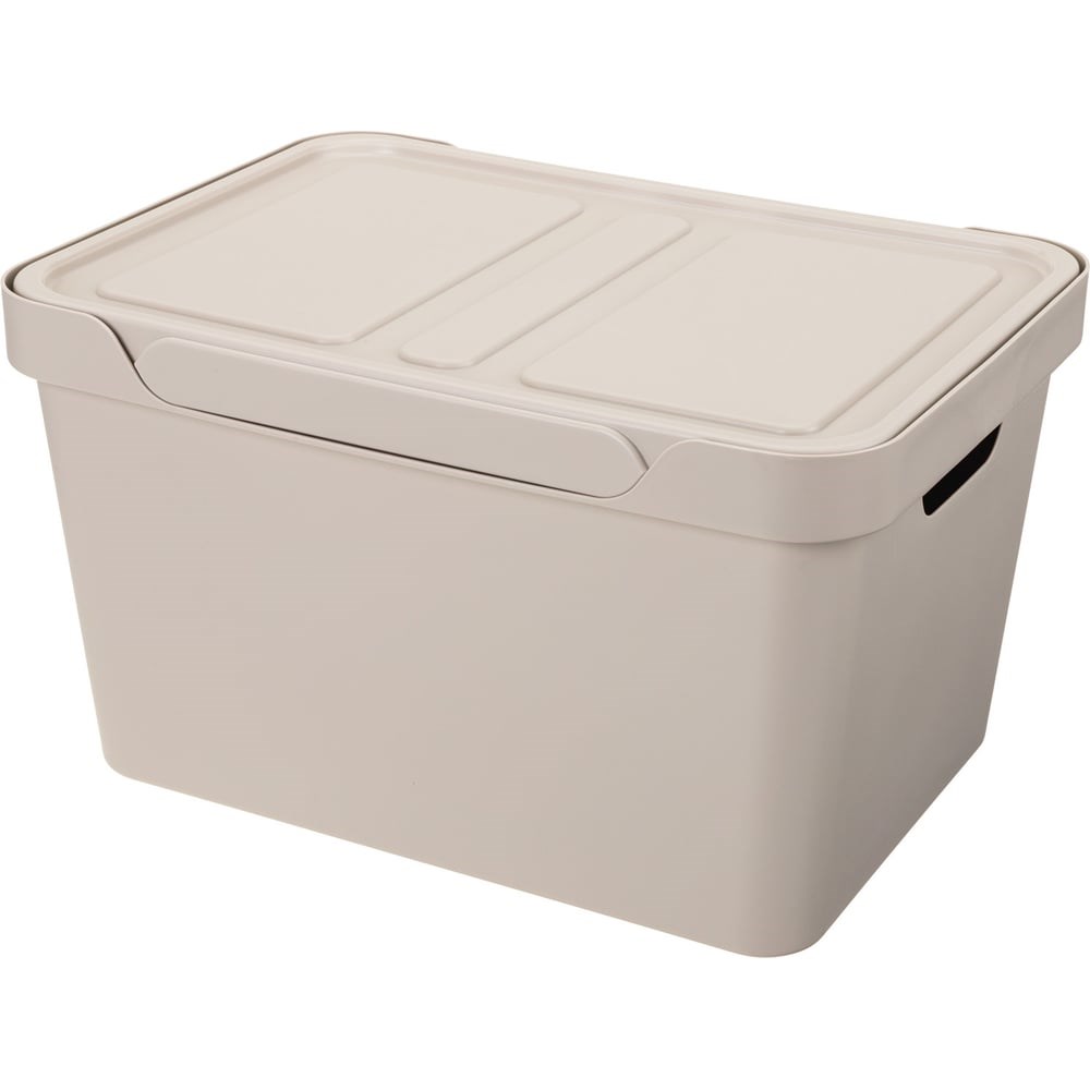 Универсальный ящик Econova Luxe с крышкой, 380х276х220 мм, 18 л светло-бежевый 433205834 предназначен для аккуратного хранения вещей. Благодаря наличию крышки содержимое защищено от пыли и влаги. За счет компактных размеров не занимает много места. Ящик легко моется, поэтому не требует сложного ухода.