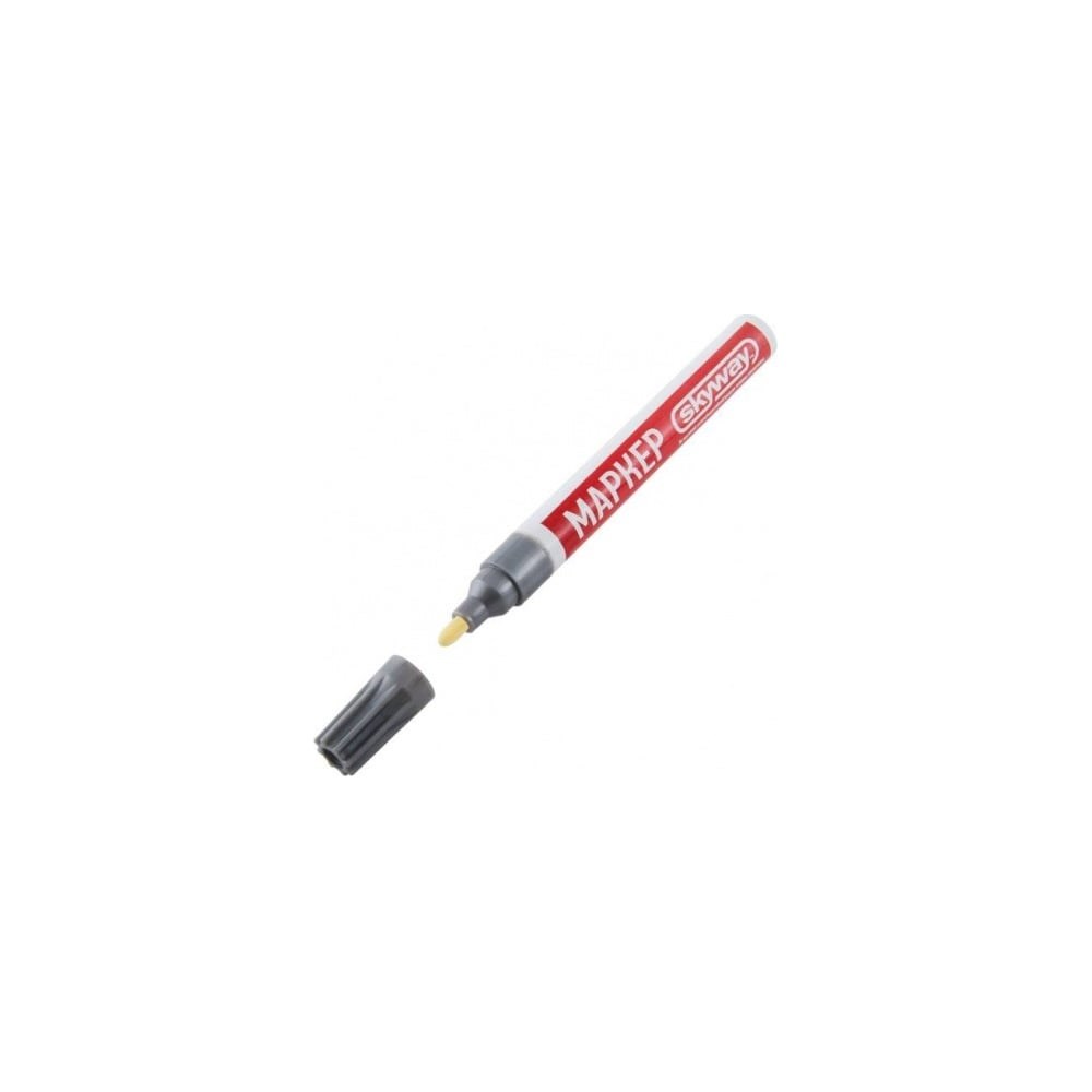 Маркер SKYWAY универсальный с наконечником из фетра, цвет серебряный - маркер на масляной основе, водостойкий, со средней толщиной наконечника. Подходит для нанесения на различные поверхности: вы можете сделать надпись на металлической трубе, дереве, стекле или компакт-диске. Универсальный маркер удобно держать в руке. Корпус изготовлен из металла, который не гнется и сохраняет форму.Инструкция по применениюОчистите обрабатываемую поверхность от всех видов загрязнений.Хорошо встряхните маркер перед применением.Откройте колпачок и прижмите наконечник к поверхности.Держите маркер строго вертикально до тех пор, пока не начнут выступать чернила.После использования закройте колпачок до щелчка.