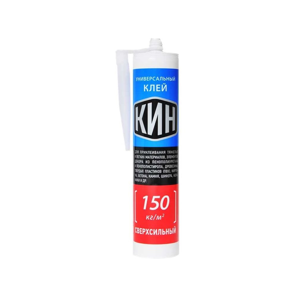 Универсальный монтажный клей ООО Гранд Пак КИН 150 кг/кв. м, сверхсильный, 290 гр 5768 обладает быстрой силой схватывания, отличается прекрасной эластичностью. После высыхания клей не становится хрупким и не расслаивается. Служит для приклеивания тяжелых и легких материалов, элементов декора из пенополиуретана и пенополистирола, древесины и ее производных (фанера, ДСП, МДФ), твердых пластиков (ПВХ), кирпича, бетона, камня, шифера, керамики к штукатурным, гипсокартонным, бетонным, кирпичным и деревянным поверхностям. Используют для внутренних и наружных работ.