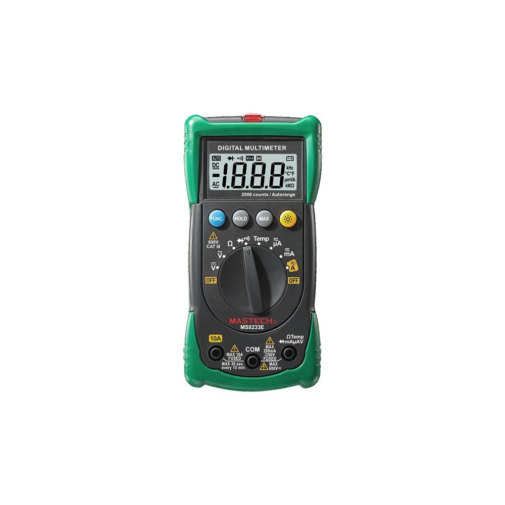 Мультиметр — электроизмерительный прибор, который включает в себя несколько функций и набор измеряемых параметров. Все приборы серии MS8233 измеряют постоянное и переменное напряжение, а также постоянный и переменный ток, сопротивление в цепи и даже температуру. С помощью данного прибора можно проводить тестирование диодов и осуществлять прозвонку целостности цепи. Мультиметр MS8233E оборудован специальным датчиком, с помощью которого вы бесконтактно сможете определить, есть ли напряжение на участке, например в розетке, если есть необходимость демонтировать ее, то с помощью данного мультиметра вы сможете сразу узнать, если ли в ней напряжение. Таким образом, один прибор сможет заменить сразу несколько устройств одновременно.