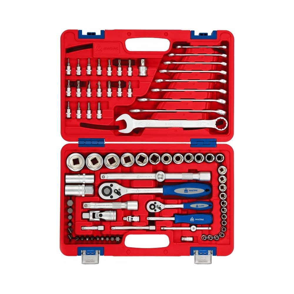 Универсальный набор инструментов МАСТАК 82 предмета 01-082C служит для обслуживания автомобиля, садовой и бытовой техники, а также сбора мебели. Инструменты изготовлены из прочной и стойкой к нагрузкам хромованадиевой стали. Маслобензостойкие рукоятки защищены от воздействия агрессивных сред. Комплект поставляется в удобном кейсе с металлическими замками.