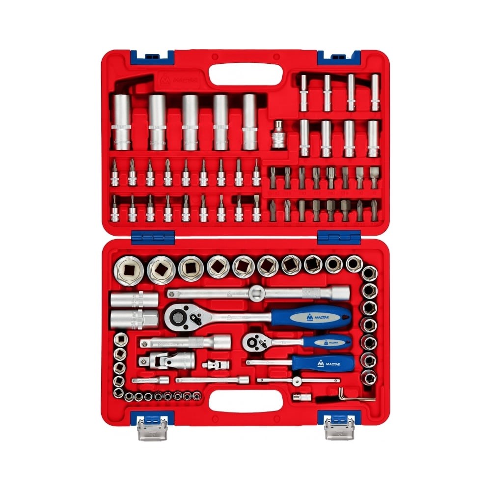 Универсальный набор инструментов МАСТАК 94 предмета 01-094C подойдет для использования в автомастерских, а также может служить для ремонта бытовой и садовой техники. Комплект состоит из большого количества инструментов, рабочие части которых изготовлены из прочной стали. Рукоятки обладают стойкостью к агрессивным средам. Для компактного и долговечного хранения набор поставляется в кейсе.