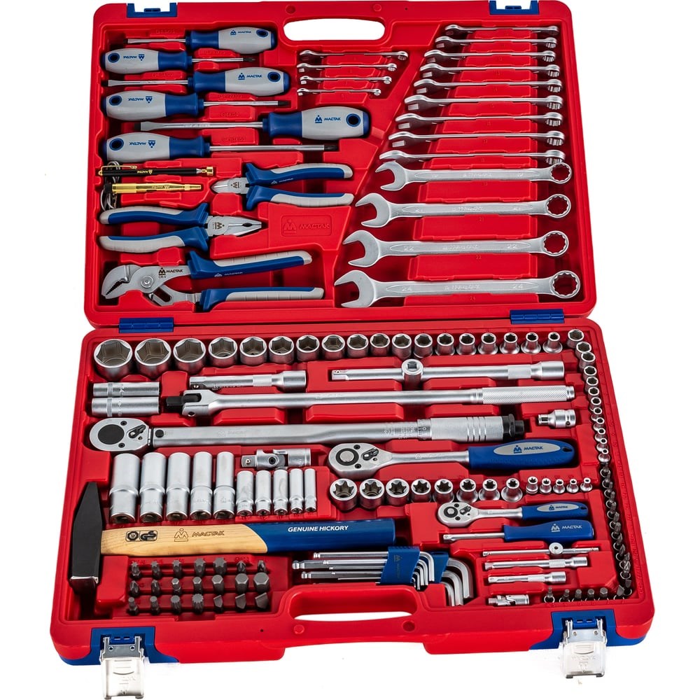 Универсальный набор инструментов МАСТАК 146 предметов 01-146C применяется как автолбюбителями, так и профессионалами в мастерских. Богатая комплектация набора позволяет выполнить практически любые задачи. Устойчивая к коррозии и деформации хромованадиевая сталь, из которой изготовлены инструменты, обеспечивает длительный срок службы. Для удобства работы рукоятки инструмента изготовлены из маслобензостойкой резины. Весь набор поставляется в прочном пластиковом кейсе с металлическими замками, поэтому его удобно хранить и транспортировать, а каждый инструмент будет всегда под рукой.