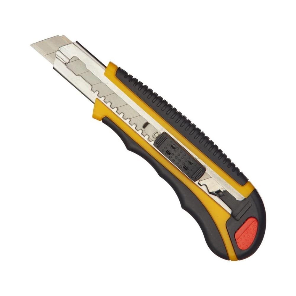 Эргономичная рукоятка. Система блокировки лезвия. Металлические направляющие для лезвия. Запасные лезвия в комплекте.