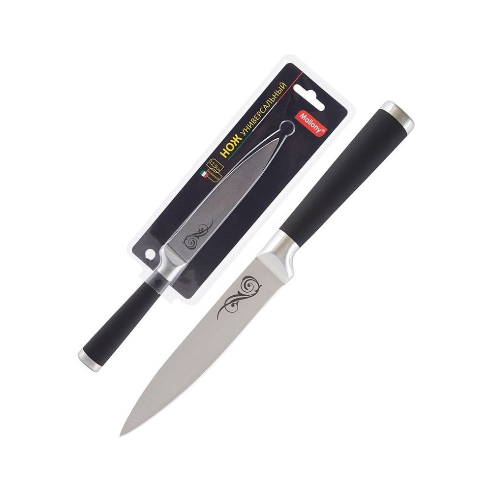 Нож с прорезиненной рукояткой Mallony MAL-05RS универсальный, предназначендля эксплуатации в быту, на кухне, а также в местах общественного питания.Ножизготовлениз прочной стали. Толщина клинка составляет 1.75 мм.Ножимеет прочную рукоять с прорезиненным покрытием soft touch.