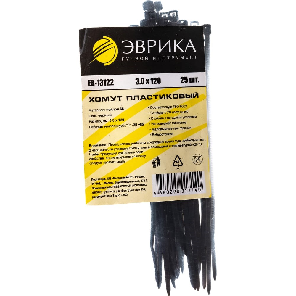 Пластиковый хомут черный 3.0x120мм универсальный 25шт Эврика ER-13122 956493