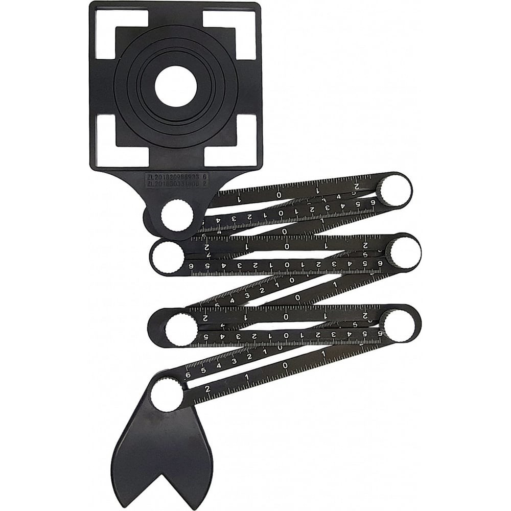 Универсальный шаблон плиточника с угловым фиксатором, 6 колен, 1 трафарет 280401Назначение: для быстрой разметки углов и отверстий на любых поверхностях при ремонте и строительстве.Особенности: Оснащен трафаретом для высверливания отверстий диаметром 25, 40, 45, 55 мм. Линейки изготовлены из алюминия. Угловой фиксатор позволяет более точно зафиксировать шаблон.