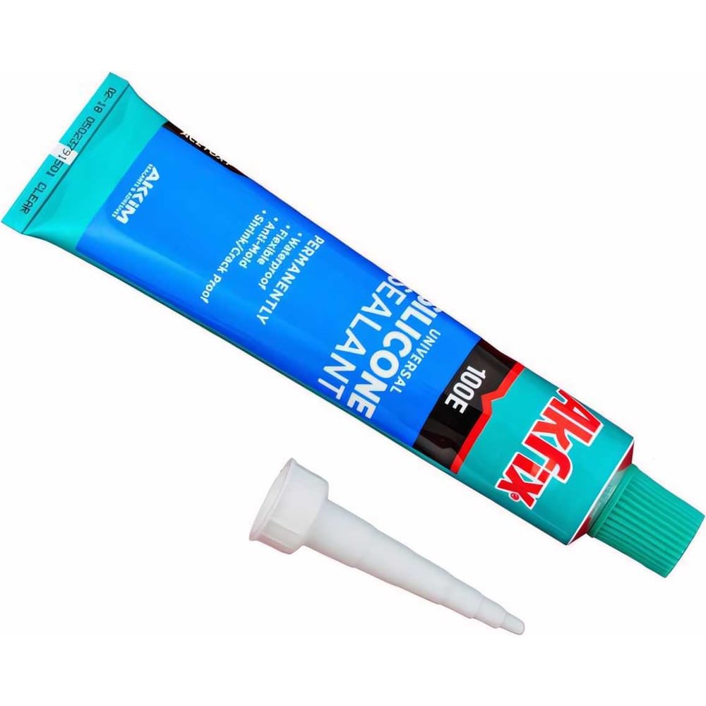 Универсальный силиконовый герметик Akfix 100E прозрачный, 50 мл SA111 - однокомпонентный силиконовый герметик широкого спектра использования для герметизации и остекления. Обеспечивает высокую адгезию и подходит для использования на типичных беспористых строительных материалах. Области применения: Герметизация элементов окон и дверей, герметизация примыканий Герметизация необходимых мест в быту Герметичное заполнение швов в ванной и кухне, монтаж сантехники Соединительные и компенсационные швы на стекле, фарфоре, стали и т.д. Уплотнение электрических, телефонных и др. разъемов и переключателей
