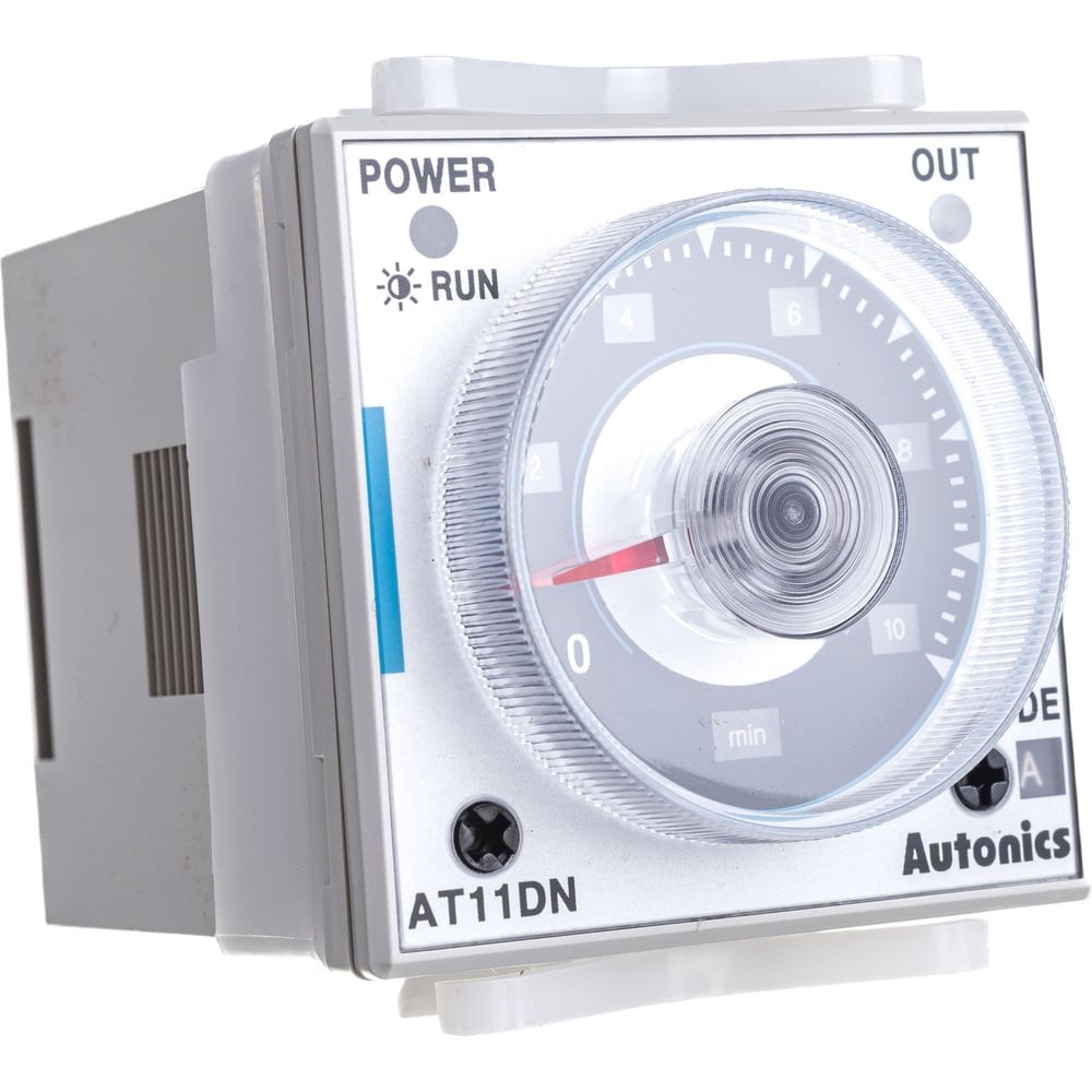 Универсальный таймер Autonics AT11DN 100-240В, 50/60Гц, артикул 00000012630 применяется для управления задержкой, интервалами и периодами в промышленной автоматике. Операции выхода - задержка по включению сигнала, задержка по выключению сигнала, задержка по включению-выключению сигнала, импульсный режим мерцание, интервальный режим. Дополнительные характеристики: Рабочий режим - установка времени. Время срабатывания - запуск по сигналу. Подключение - 11-контактный штекер. Напряжение питания - 100-240V AC, 24-240V DC. Тип входного сигнала - вход без напряжения NPN. Управляющий выход - перекидной контакт с ограничением по времени (нормально замкнутый): 2.