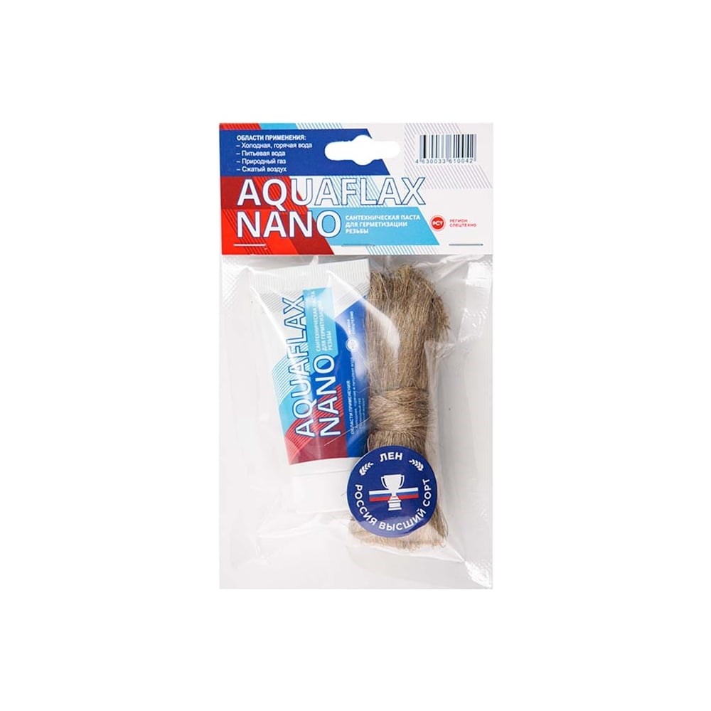 Уплотнительная паста 30 грамм, тюбик + 15 грамм лён Aquaflax nano 04050 предназначены для герметизации резьбовых соединений в различных средах. Специально разработанная формула пасты AQUAFLAX NANO имеет наночастицы, которые позволяют быстро и эффективно проникать в структуру льна и надежно уплотнять резьбу. Ее формула не пачкает инструмент и руки мастера и легко стирается без использования воды. Лён в наборе отличается российским качеством и чистотой волокон. Время герметизации: мгновенно Температура монтажа: без ограничений Рабочая температура: от - 60 до + 120°C Демонтаж: облегчённый ОБЛАСТИ ПРИМЕНЕНИЯ: природный газ холодная и горячая вода -системы отопления питьевая вода сжатый воздух
