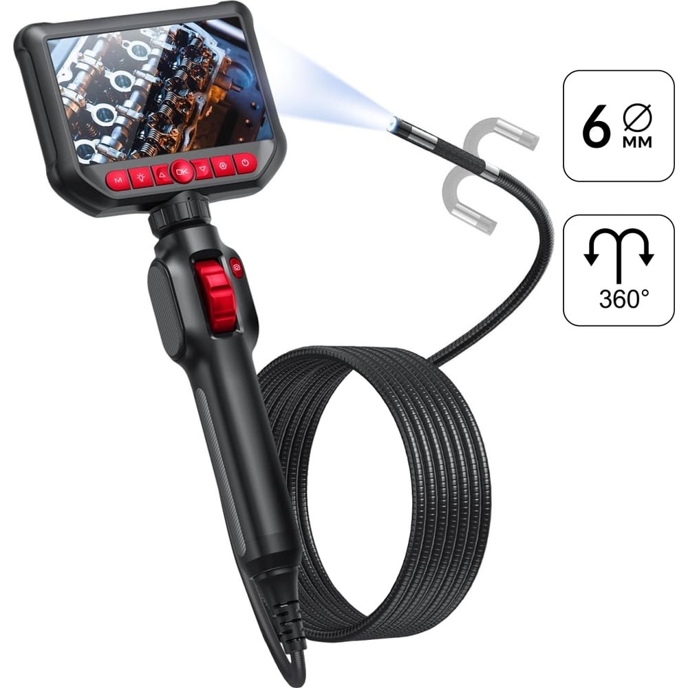 iCartool IC-VC156 управляемый видеоэндоскоп с поворотной камерой на 360° и экраном диагональю 4,3”. Экран с IPS-матрицей имеет простой и удобный интерфейс. Камера разрешением 2 Мп обеспечивает качественную картинку, а пошаговый цифровой зум помогает рассмотреть мелкие детали.Зонд эндоскопа имеет универсальную длину 1,5 м и диаметр камеры в 6 мм, оптимальный для автодиагностики. Зонд полужесткий, запоминает форму изгиба, которую ему придают. Внешняя оболочка дистальной части усилена вольфрамом для увеличения срока эксплуатации.Зонд прибора имеет встроенный термодатчик, он отключает прибор при достижении температуры 80 °C во избежание перегрева головки камеры. Показания термодатчика выводятся на экран в режиме реального времени.Для работы в темных местах предусмотрена регулируемая LED-подсветка. Эндоскоп работает от собственного аккумулятора до 3,5 часов.Видеоэндоскоп позволяет производить аудиозапись во время съемки, а также доступен просмотр видеозаписи со звуком.Особенности функционала:Настройка яркости экранаИндикация на дисплее значения рабочей температуры для контроля нагрева видеокамерыЦифровой зумСтоп-кадрПоворот картинки на экране на 180°Угол обзора 70°Фокусное расстояние от 2 до 10 смСохранение фото и видеозаписи на карту памяти 16 ГБ class 10 (входит в комплект)Аудиозапись съемкиРегулируемая LED-подсветка: 6 светодиодов, 3 режима яркостиАккумулятор объемом 2000 мАч