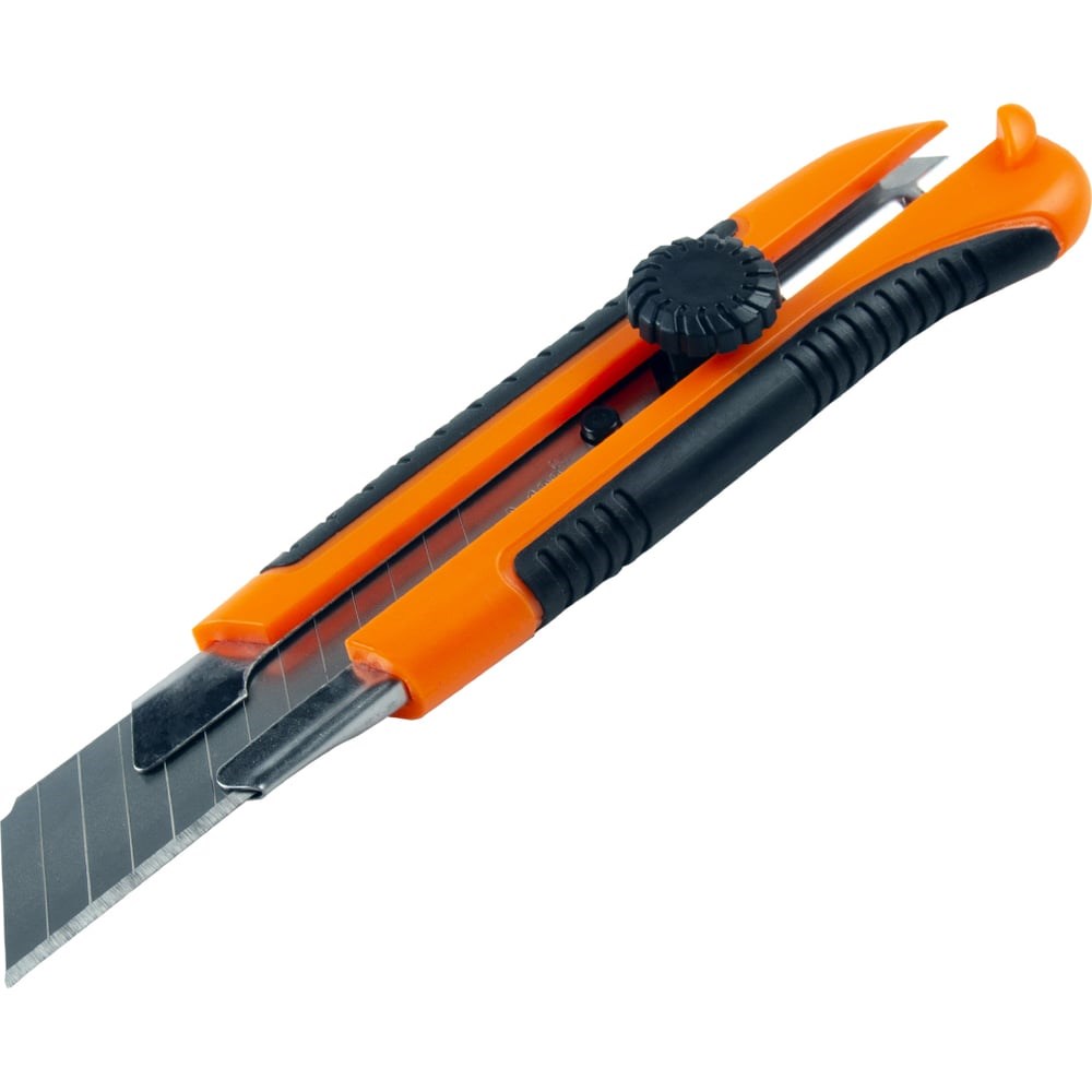 Используется для разрезания тонких мягких материалов: бумаги, картона, обоев, линолеума и упаковочной ленты. Материал корпуса: прорезиненный пластик;x000D Материал лезвия: сталь;x000D Ширина лезвия: 25 мм.