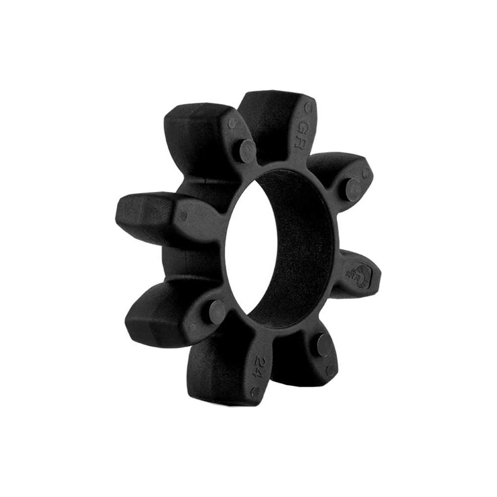 Упругий элемент типа паук черный предназначен для осуществления упругой связи между соединительными муфтами кулачкового типа. Конструкция эластичного элемента имеет 8 лучей. Изготовлен из полиуретана черного цвета. Ему соответствует твердость 94 Shore A.