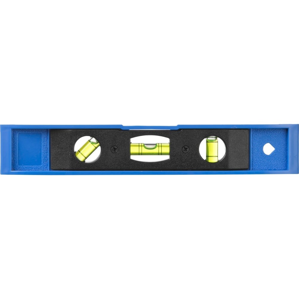 Пластмассовый уровень МИНИ с магнитом 230мм СИБИН 3453 - удобный в работе, компактный измерительный инструмент для контроля отклонений различных поверхностей от горизонтальности, вертикальности и угла 45 градусов.