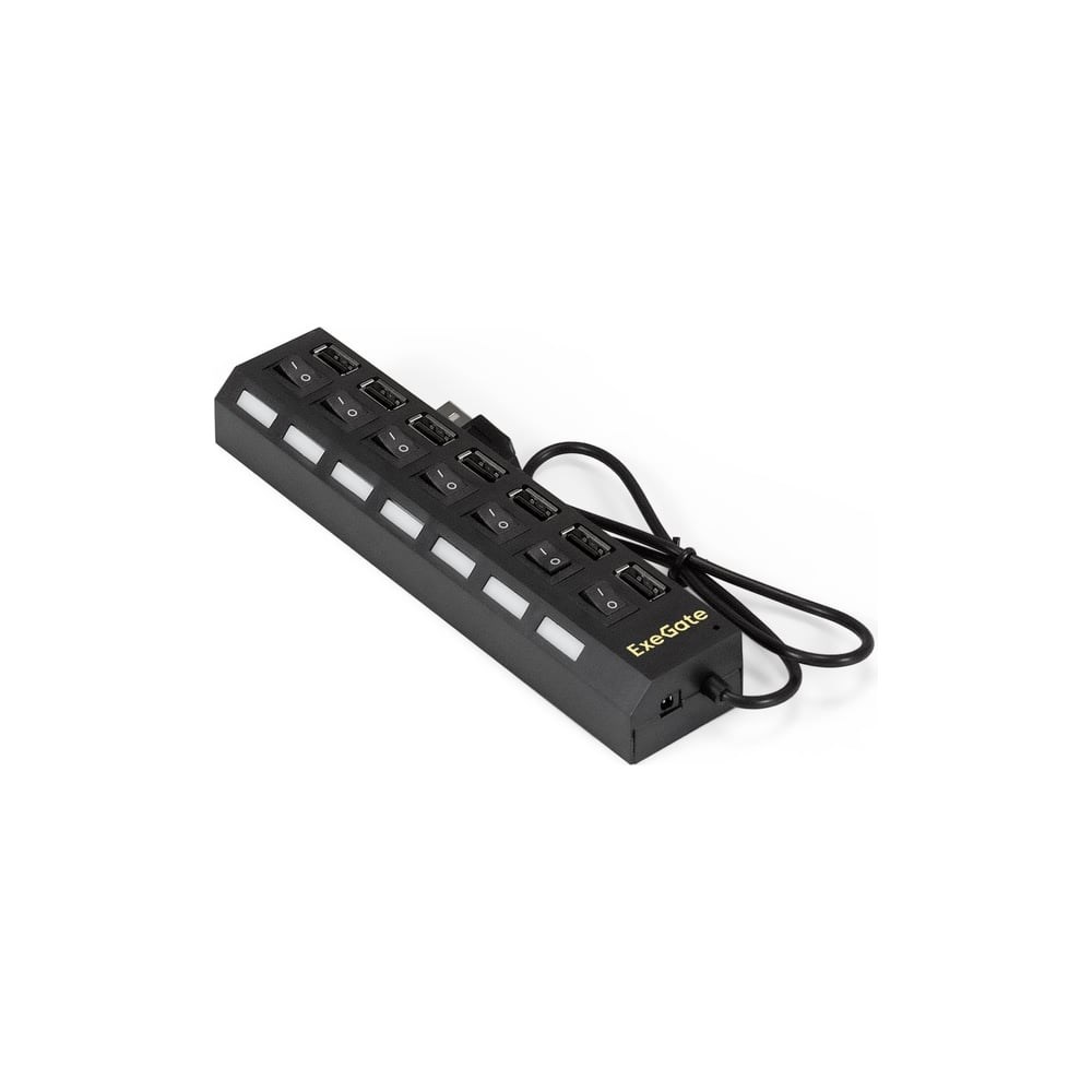 USB-Хаб ExeGate концентратор 7-в-1 DUB-72SW кабель-адаптер USB2.0 -- 7xUSB2.0, кнопки включения/отключения для каждого порта, Plug Play, черный 293978