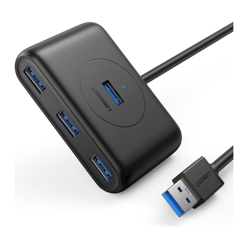 USB концентратор Ugreen хаб 4 х USB 3.0, 1 м, цвет черный 20291 позволяет подключить к ПК или ноутбуку до 4 устройств одновременно - внешние жесткие диски, USB-накопители, мышь, клавиатуру и многое другое. Расширение портов избавляет от необходимости повторного подключения и отключения устройств. USB 3.0 хаб поддерживает сверхбыструю передачу данных до 5 Гбит/с, что в 10 раз быстрее, чем при использовании USB 2.0 (480 Мбит/с). Это позволяет передавать HD фильмы или большие файлы всего за несколько секунд. Светодиодный индикатор позволяет легко контролировать статус подключения. Концентратор идеально подходит для работы с ПК, так как с его помощью вы можете подключиться к труднодоступным USB-портам ПК в любом месте. Примечание: При подключении iPad и других планшетов, требующих более высокую входную мощность, USB 3.0-концентратор может использоваться для синхронизации данных, но не для зарядки. (Стандартный USB 3.0 интерфейс на ноутбуке обеспечивает входную мощность до 900 мА). Беспроводные устройства с частотой 2,4 ГГц, MIDI-устройства и некоторые устройства с USB 3.0 интерфейсом могут не поддерживаться. Попробуйте использовать хост-порт или подключение USB 2.0.