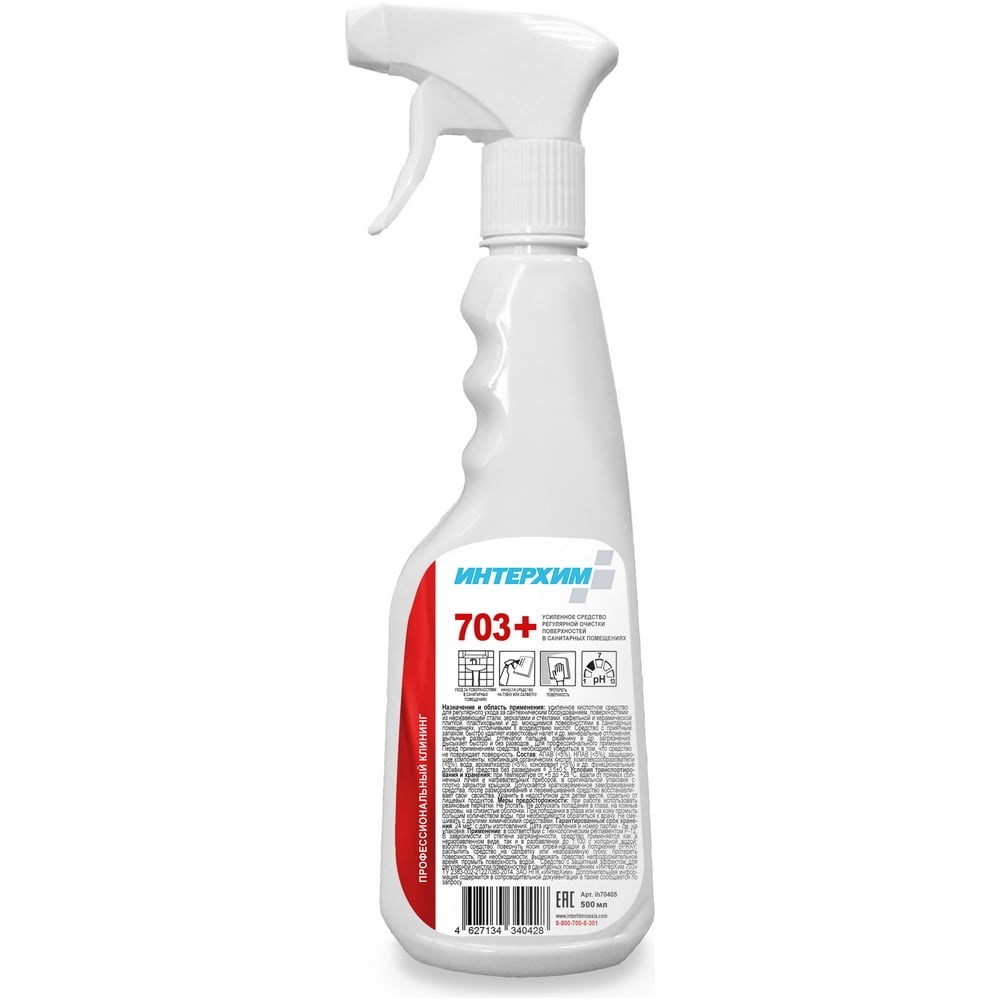 Усиленное средство очистки поверхностей в санитарных помещениях ИНТЕРХИМ 703 PLUS 0.5 л ih70405 - средство для ухода за сантехническим оборудованием, поверхностями из нержавеющей стали, зеркалами и стёклами, кафельной и керамической плиткой, пластиковыми и др. моющимися поверхностями в санитарных помещениях, устойчивыми к воздействию кислот.Перед применением средства необходимо убедиться в том, что средство не повреждает поверхность.Не содержит хлора и абразивов.Для интенсивной очистки средство применяется без разбавления.Допускается разведение водой до 1:100.