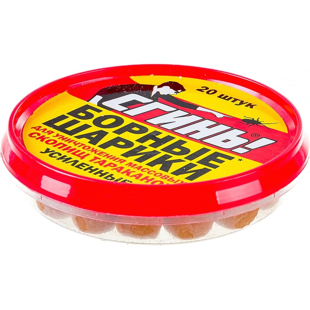 Борные шарики, усиленные, от тараканов СГИНЬ! 20 шт. банка 20001 представляет собой эффективное и испытанное средство по борьбе с тараканами. Шарики размещаются в местах появления и передвижения насекомых.