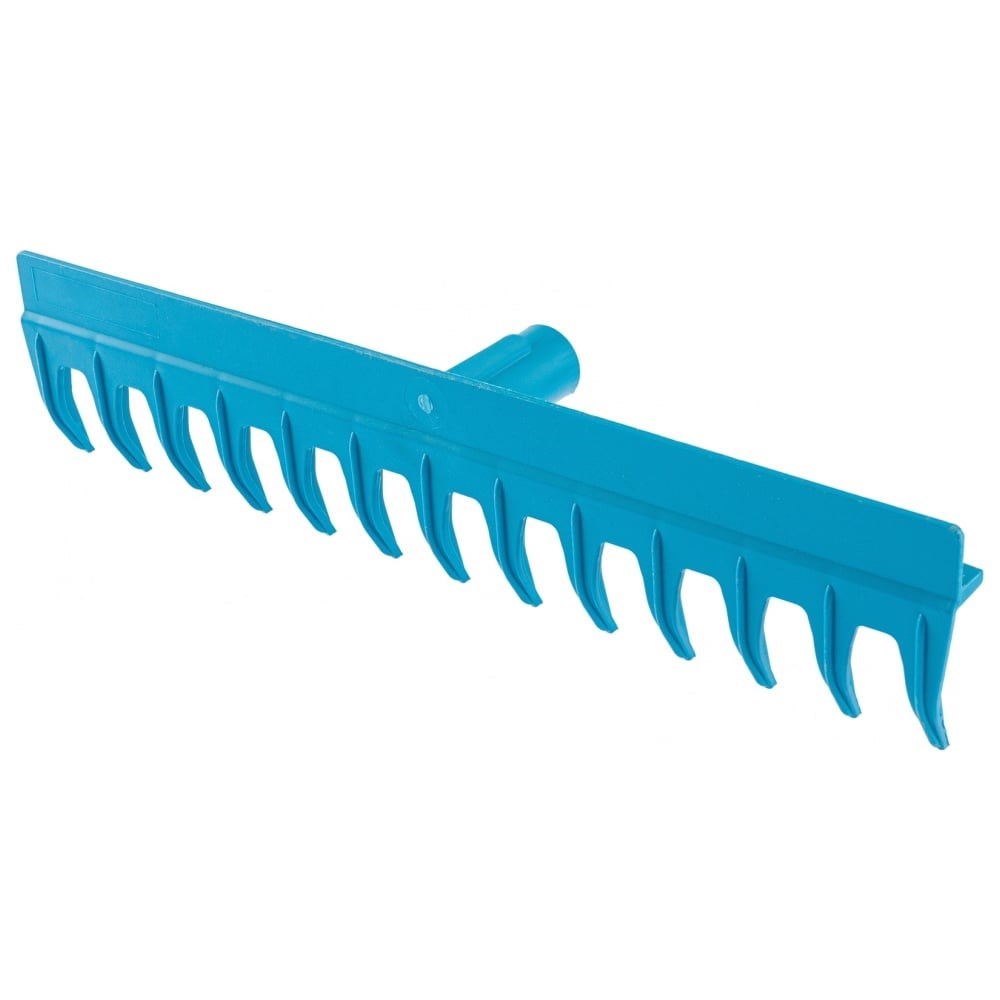 Усиленные пластиковые грабли Palisad LUXE 61738 с 13 прямыми зубьями и шириной рабочей части 430 мм, без черенка, - садовый инвентарь, предназначенный для рыхления почвы, а также уборки территории. Грабли поставляются без черенка - можно подобрать наиболее подходящий, совместимый с тулейкой диаметром 30 мм.