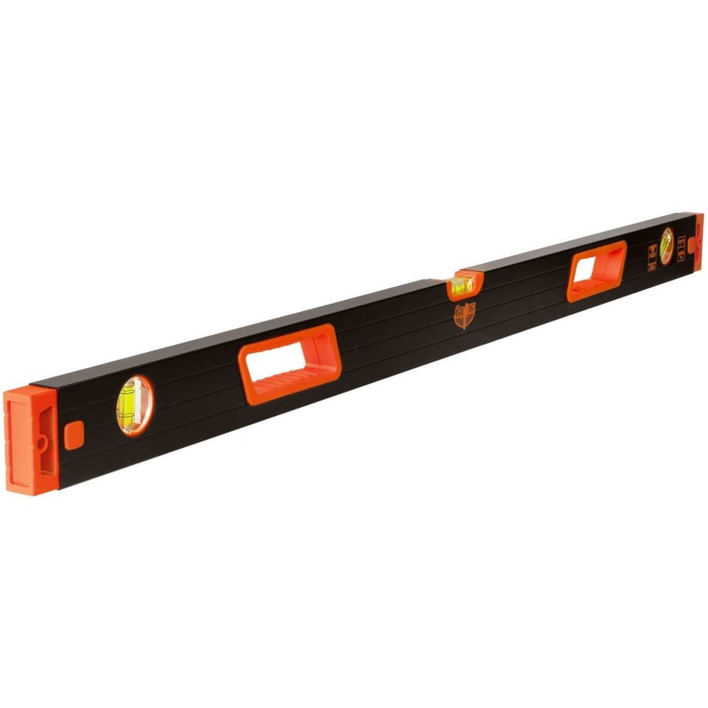 Усиленный фрезерованный уровень с ручками (1000 мм, 3 глазка) ВАРЯГ КТ 60-1 40364 тов-165907 представляет собой профессиональный инструмент, который предназначается для выявления отклонений поверхности по горизонтали и вертикали, а также для определения углов 45 градусов. Корпус из двухкамерного алюминиевого профиля толщиной 2 мм отличается устойчивостью к изгибу и скручиванию. Конструкция оснащена тремя глазками, которые прошли электронную проверку и калибровку. Амортизирующие колпачки на концах препятствуют повреждению изделия при падении.