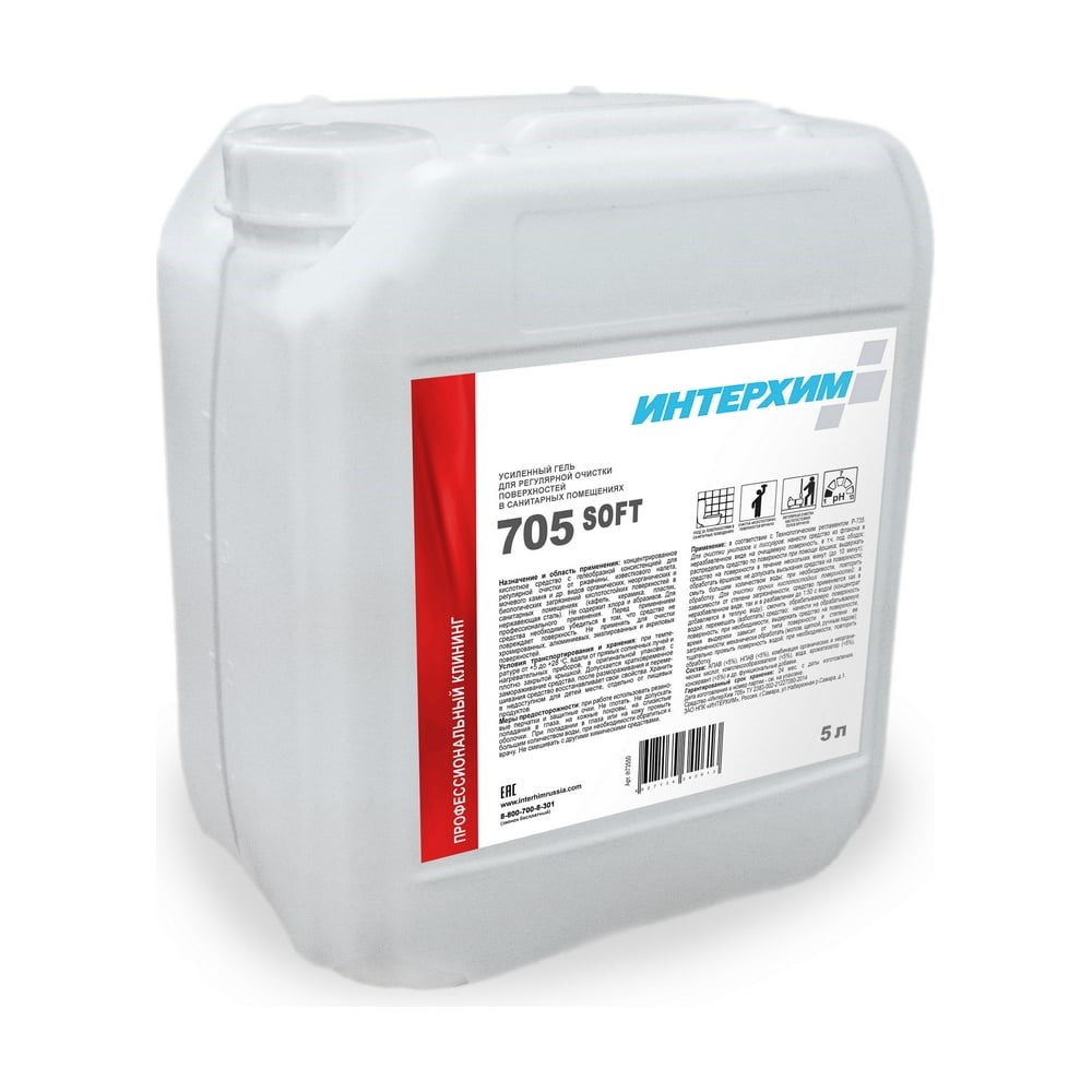 Усиленный гель для регулярной очистки поверхностей в санитарных помещениях ИНТЕРХИМ 705 SOFT 5 л ih73550 - Концентрированное кислотное средство с гелеобразной консистенцией для регулярной очистки от ржавчины, известкового налета, мочевого камня и др. видов органических, неорганических и биологических загрязнений кислотостойких поверхностей в санитарных помещениях (кафель, керамика, пластик, нержавеющая сталь). Не содержит хлора и абразивов. Для профессионального применения. Перед применением средства необходимо убедиться в том, что средство не повреждает поверхность. Не применять для очистки хромированных, алюминиевых, эмалированных и акриловых поверхностей.