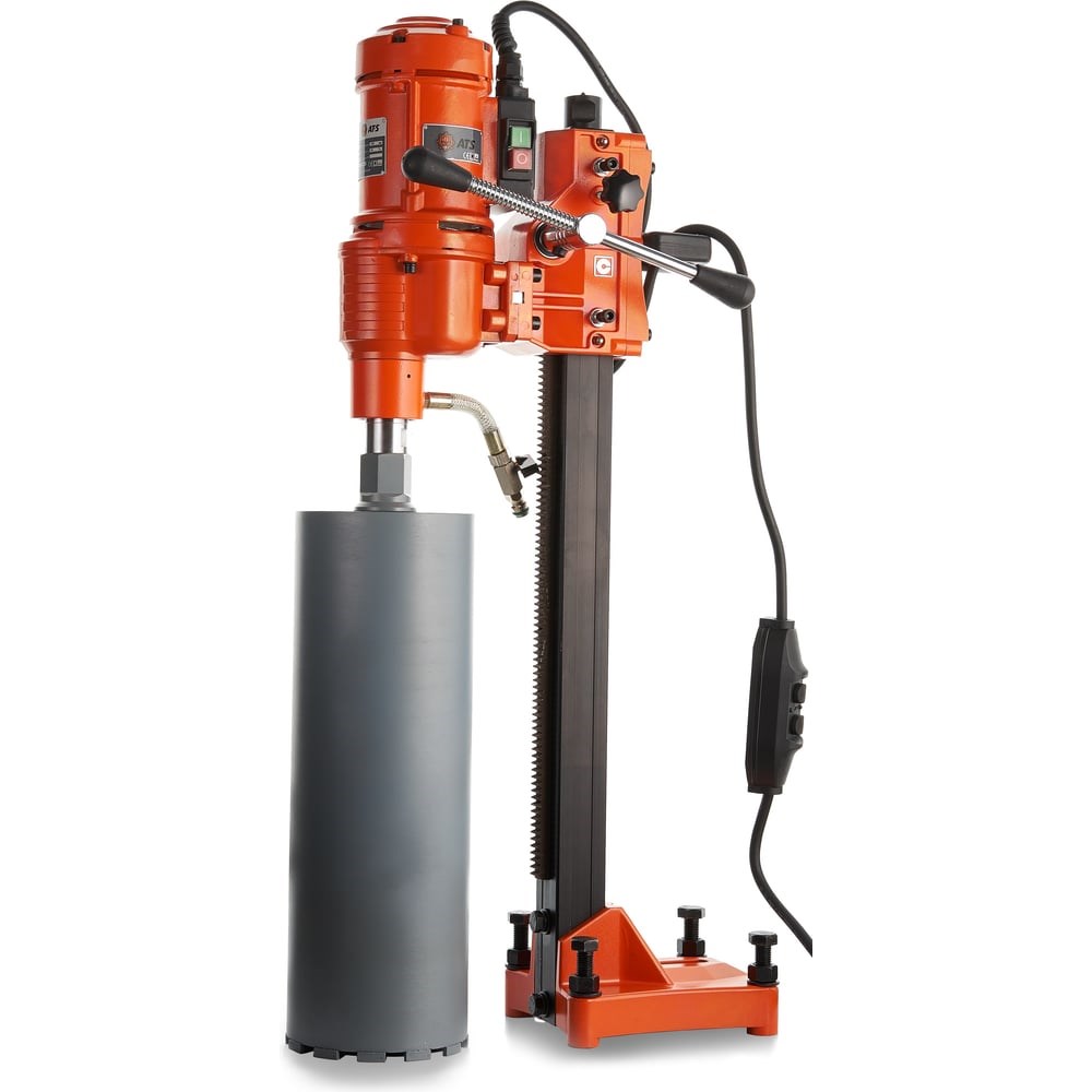 Установка алмазного бурения AT-S SU-235 служит для получения отверстий в камне, бетоне, железобетоне, кирпиче, мраморе, граните и асфальте на строительных объектах. Стойка агрегата изготовлена из металлического профиля высокой прочности, и вместе с надежным опорным основанием обеспечивает жесткую конструкцию, которая исключает вибрации при выполнении работ. Двигатель мощностью 4180 Вт дает большую производительность и имеет корпус из металла, что гарантирует защиту от повреждений и долгий срок службы.