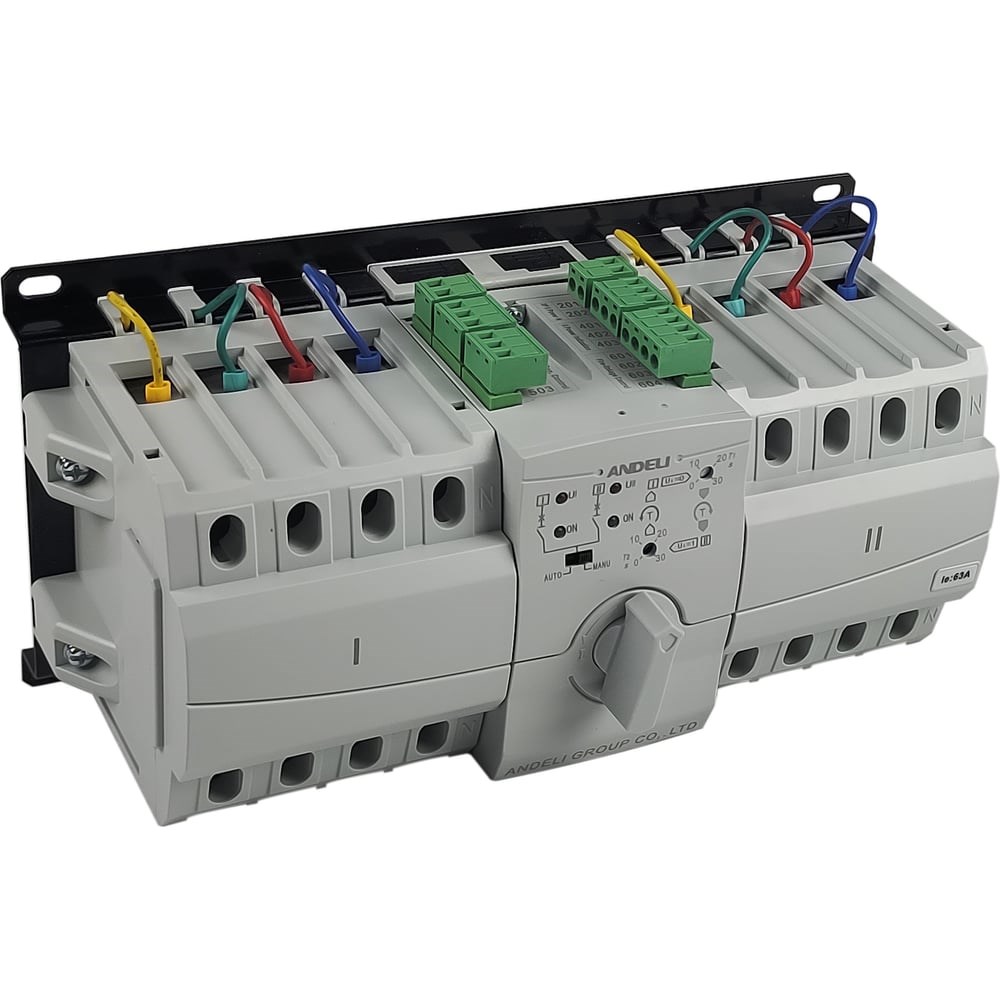 Устройство автоматического ввода резерва (АВР) ANDELI HATS9 предназначено для автоматического перехода на резервный источник питания в электрических сетях переменного тока частотой 50 Гц номинальным рабочим напряжением до 400 В и номинальным током от 6А до 63А. Серия HATS9 обеспечивает автоматическое переключение одной или нескольких нагрузок сети с одного источника питания на другой в целях обеспечения нормального функционирования оборудования на объектах. HATS9 применяется на промышленных, коммерческих и бытовых объектах, а также в жилых домах. HATS9 имеет новый конструктив на основе модульных автоматических выключателей обеспечивает максимальную компактность устройства. Характеристики: Номинальный ток 63 (А) Количество полюсов: 4Р, Контроллер типа В (базовый тип). Номинальное рабочее напряжение: АС85-280В 50/60Гц Установка интегрированная. Три рабочих положения. Автоматический и ручной режим. Управление генератором: набор 5А реле с сухими контактами. Связь с противопожарной системой: Да Автоматический переход с основного ввода на резервный с самовозвратом; Автоматический режим работы на двух разноцветных вводах; Автоматический переход от сети к генератору. Задержка перевода на второй ввод: Плавно регулируется в диапазоне от 0.2с до 30с Задержка самовозврата на первый ввод: Плавно регулируется в диапазоне от 0.2с до 30с Рассеиваемая мощность не более 5Вт Рабочая температура окружающей среды от -20С до +60С.