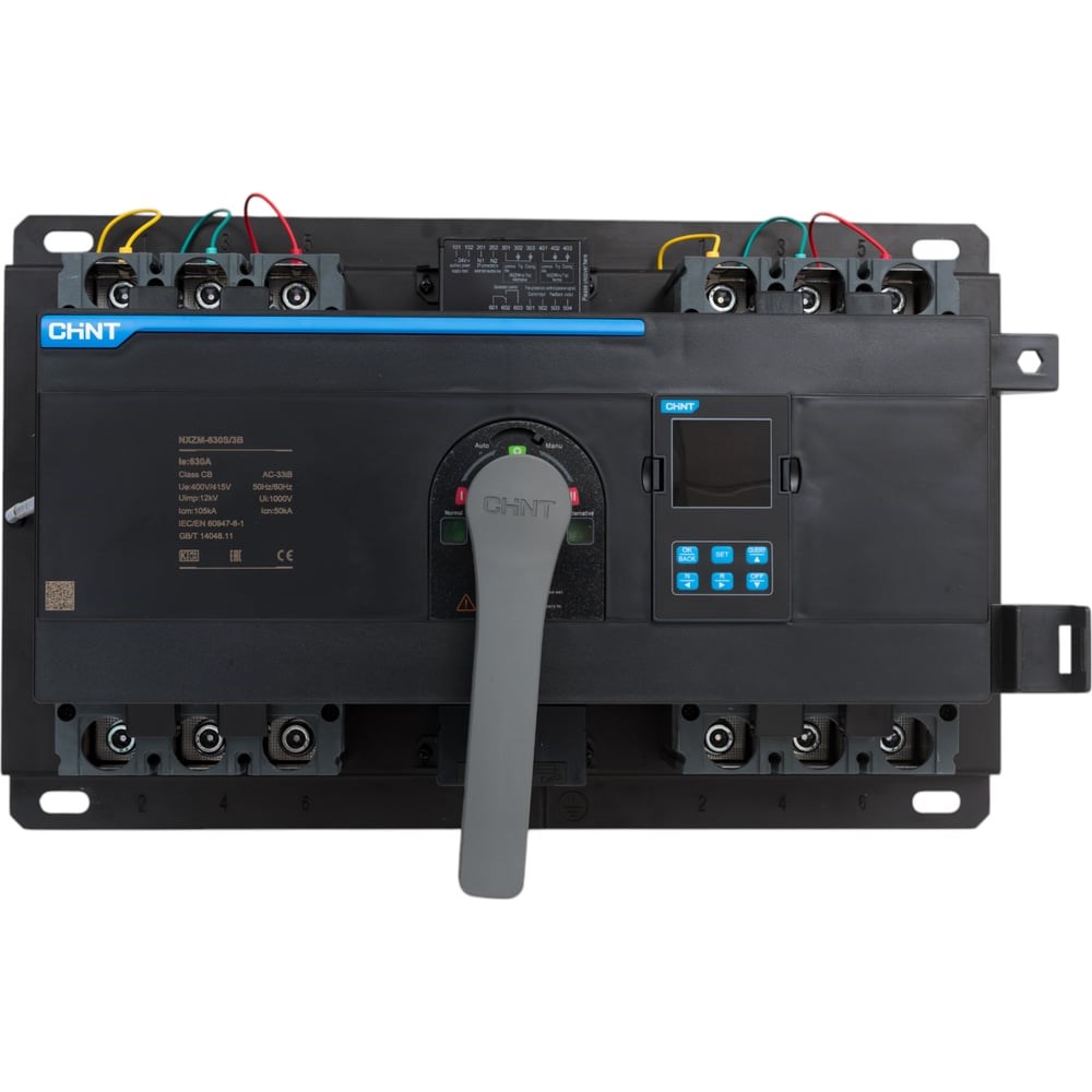 Внимание! Фото товара является условным, при выборе ориентируйтесь на технические характеристики. Устройство автоматического ввода резерва CHINT АВР 630А NXZM-630S/3B (R) 256823 предназначено для автоматического перехода от одного источника питания к другому с целью поддержания нормального питания цепей нагрузки. Подходит для работы с трехфазными четырехпроводными воздушными линиями электропередач. Такие линии с дублирующими заземлителями нейтрали встречаются на промышленных объектах и в сетях общего назначения (многоэтажные здания, жилые кварталы и др.). Данная модель выполнена в типоразмере 630S и работает с номинальным током 630A. Возможно подключение как трех, так и четырех полюсов. Это расширяет возможности использования блока АВР NXZM-630S/3B (R) 630A в различных электрических системах и повышает степень обеспечения защиты. Устройство может стабильно работать в сложных условиях эксплуатации, таких как перепады тепла и влажности, предельно низкие или высокие температуры, образование солевого тумана и др. Режимы работы: Основной ввод с самовозвратом - при падении напряжения происходит автоматическое переключение нагрузки на питание от резервного ввода. С восстановлением напряжения на основном вводе устройство самостоятельно переведет нагрузку обратно на питание от первого ввода; Два равнозначных ввода - этот режим работы предполагает, что основной и резервный вводы находятся в равных условиях. При отсутствии напряжения на первом вводе нагрузка переключается на второй ввод. И продолжает от него питаться, даже когда напряжение на первом вводе восстановится. То есть не происходит самовозврата. При этом в случае необходимости всегда можно выполнить переключение вручную. Режим работы с генератором - он предполагает, что в качестве резервного источника электроэнергии выступает генераторная установка. В таком режиме задействуются дополнительные функции управления. Помимо переключения на резерв моноблочный АВР серии NXZM подает сигнал на запуск и остановку генератора. При этом уставки времени переключения или подачи сигнала можно самостоятельно задать с помощью блока управления. Защитные функции: Защита от повышенного напряжения - контроль напряжения на основном и резервном источнике питания. Автоматическое переключение при повышенном напряжении. Регулировка задержки времени переключения. Защита от пониженного напряжения - контроль параметров напряжения на обоих вводах. Переключение на другой ввод при пониженном напряжении. Возможность регулировки уставок напряжения и задержки времени перехода. Защита от выпадения фазы - при обнаружении отключения или обрыва фазы напряжения происходит переключение на другой ввод. Защита от перегрузки - обнаружение сверхтоков в электрической цепи и перевод питания нагрузки на другой ввод. Защита от короткого замыкания - автоматическое переключение при появлении токов короткого замыкания. Контроль токов перегрузки и короткого замыкания выполняется на обоих вводах.