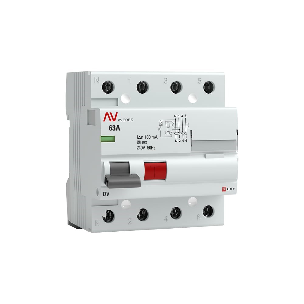 Устройство защитного отключения EKF AVERES DV, 4P, 63А/100мА S rccb-4-63-100-s-av