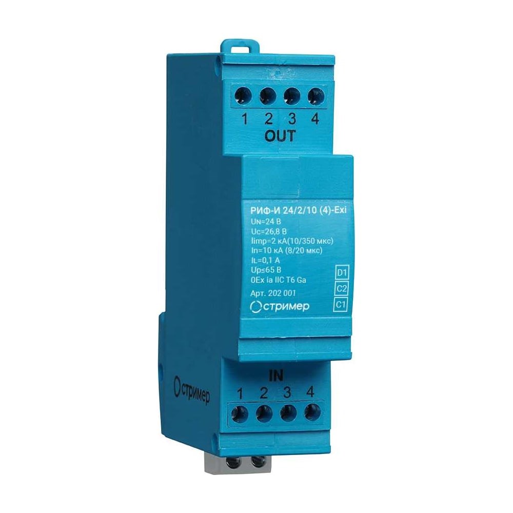 Устройство защиты от импульсных перенапряжений для информационных систем во взрывозащищенном исполнении Стример РИФ-И 24/2/10 (4)-Exi