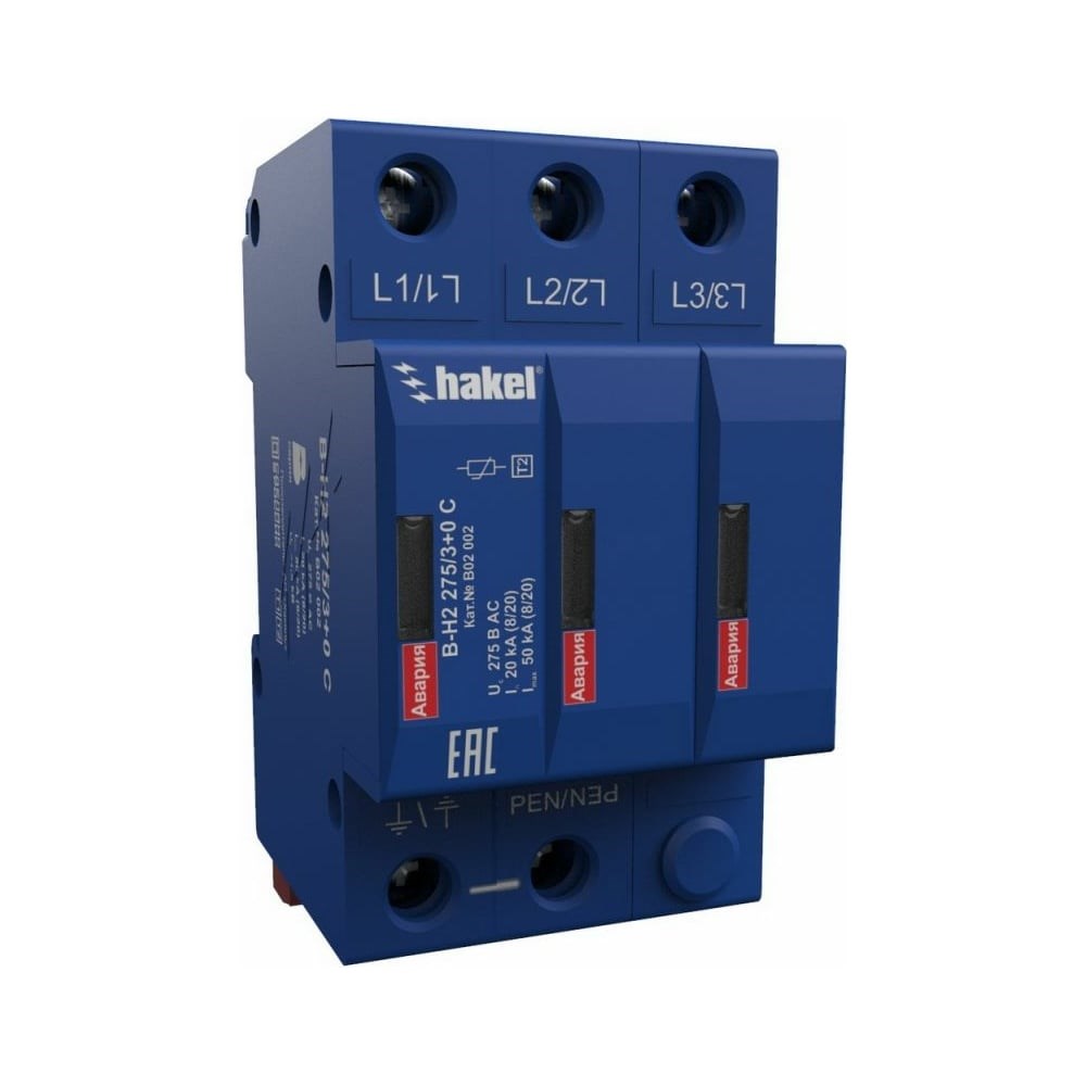 Устройство защиты от импульсных перенапряжений К2 Ключевой Компонент В-Н2 275 С/3+0 В02002 применяется в низковольтных электрических сетях на границе 1 - 2 зон молниезащиты при кабельном подземном или воздушном вводах электропитания в качестве II ступени защиты, в соответствии с: ГОСТ Р 50571-4-44-2011, ГОСТ Р 50571.5.53-2013, ГОСТ IEC 61643-11-2013. Предназначено для защиты фазных проводников от противофазных (поперечных) перенапряжений в цепях L*/PEN в системах переменного и постоянного тока. Способно отводить импульсы тока Imax(8/20) = 50 кА. Применяются в сетях с системами заземления типа TN-С, TT и IT. Для удаленного контроля снабжено "сухими" контактами дистанционной сигнализации.