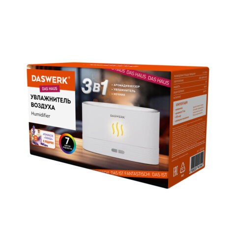 Увлажнитель воздуха "Камин", эффект пламени, 180 мл, Аромамасло в ПОДАРОК, белый, DASWERK (ДАСВЕРК), 456846