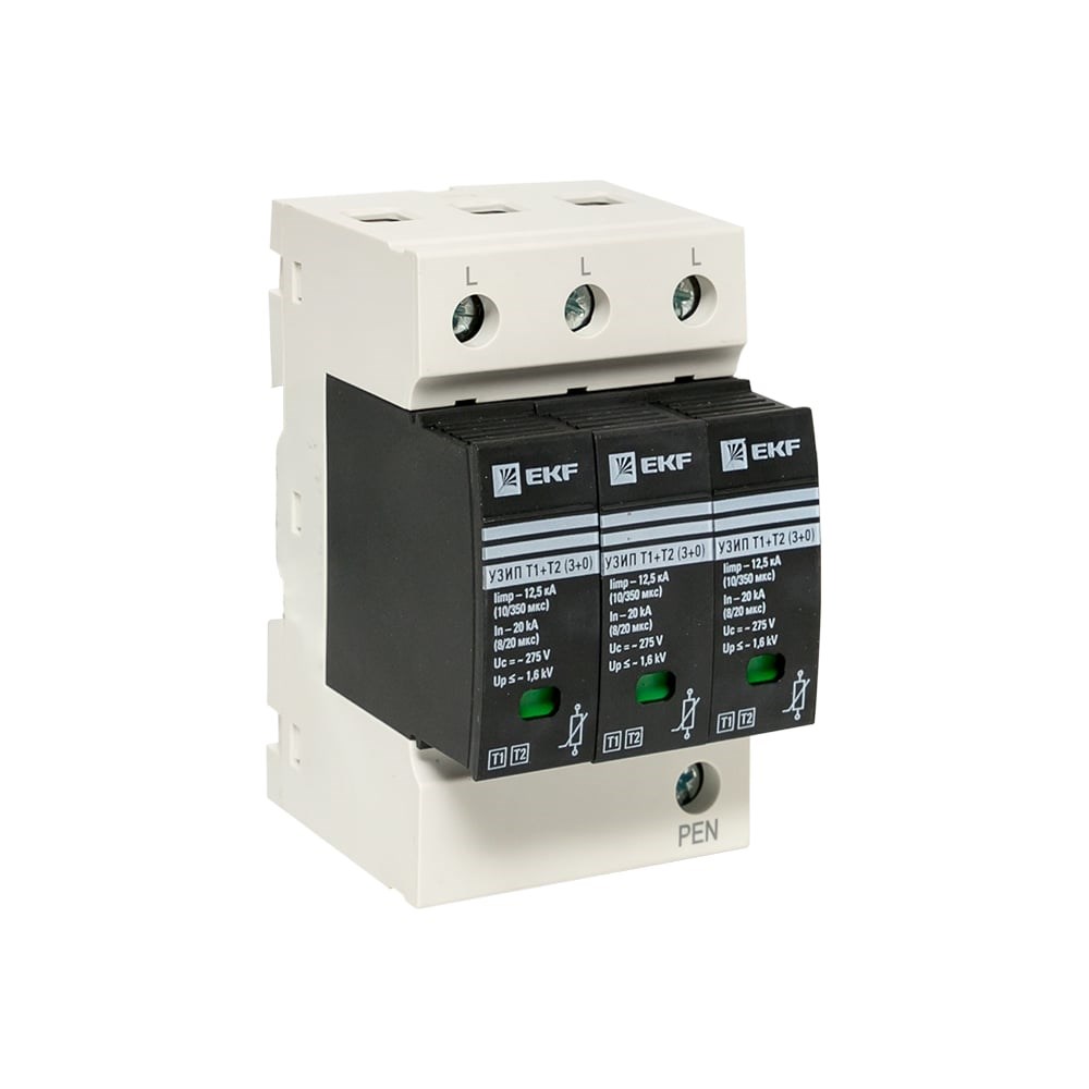 УЗИП EKF Т1+Т2; Iimp-12,5kA; In-20kA; Uc-275В; 3+0 PROxima OV12-3-503 является устройством защиты от импульсных перенапряжений (УЗИП), ограничения переходных перенапряжений и защиты от грозовых импульсов тока в сетях 230/400 В переменного тока частоты 50 Гц.