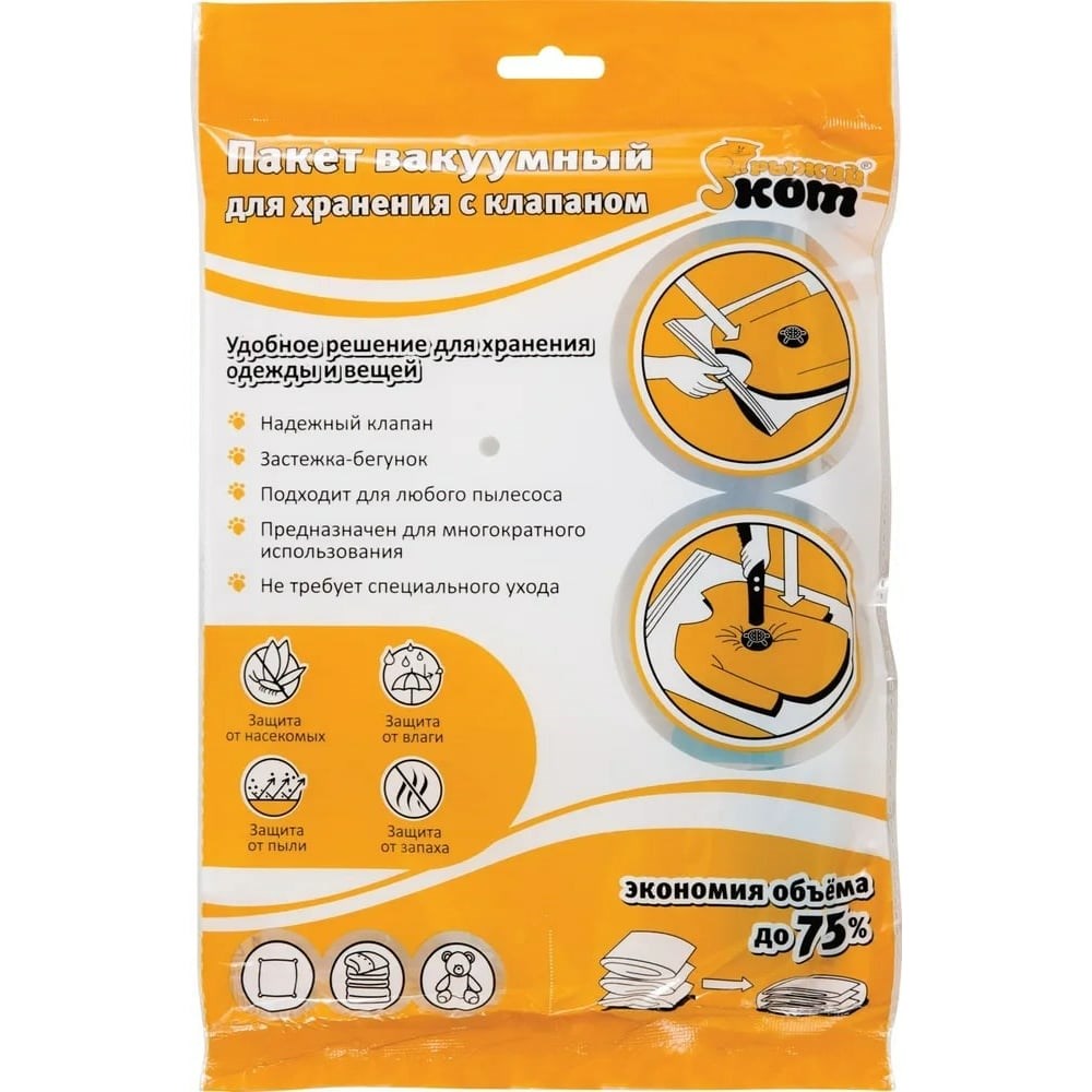 Вакуумный пакет для хранения Рыжий кот с клапаном VB1, 40х60 см 312601 предназначен для бытового использования. Позволяет организовать компактное хранение вещей, что экономит место при транспортировке. Защищает содержимое от пыли, влаги, насекомых и запахов, поэтому отличается практичностью. Пакет выполнен из полиэтилена, благодаря чему имеет высокую прочность.