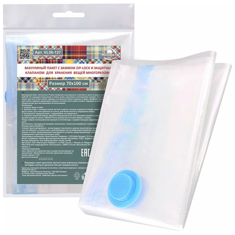 Вакуумный пакет МУЛЬТИДОМ с замком 70х100 см VL56-127 предназначен для бытового использования. Позволяет организовать компактное хранение вещей, что экономит место при транспортировке. Защищает содержимое от пыли, влаги, насекомых и запахов, поэтому отличается практичностью. Пакет выполнен из полиэтилена, благодаря чему имеет высокую прочность.