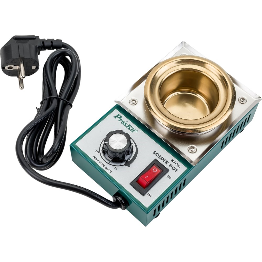 Регулировка температуры. Стабильная производительность. Стойкость к коррозии. Поставляется с Железо-хромовым алюминиевым проволочным нагревателем и алюмосиликатным материалом для сохранения тепла. Керамический нагреватель с изолированной трубкой обеспечивает лучшую защиту от работы при высоких температурах. Подходит для плавления припоя, пластика, смолы и многого другого. Тигельный материал: Нержавеющая сталь с титановым покрытием. Время плавления (Макс.установка): около 10 минут. Емкость припоя: 0,5 кг. Напряжение: 220V~240V 50/60 Гц. Стандартная вилка: Тип B.