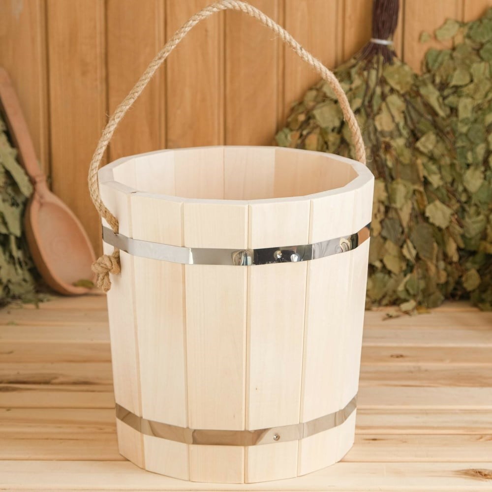 Ведро из липы Добропаровъ 10 л, нержавеющий обруч, ручка-веревка 1311798 используется в бане или в сауне. Изготовлено из липы, поэтому долго сохраняет свои природные качества. Для комфортной переноски предусмотрена удобная ручка из веревки и специальная крышка.