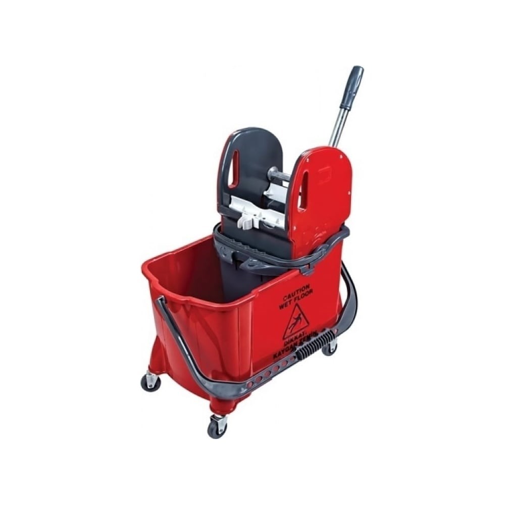 Одноведерная уборочная система. Включает пластиковое ведро 24 л на колесах, ведро 6 л под отжим, усиленный пластиковый отжим. Предназначена для профессиональной уборки в отелях, местах общественного питания, учебных и медицинских учреждениях, офисах, магазинах и т.д. Позволяет легко перемещать ведро с водой, экономя время и усилия.