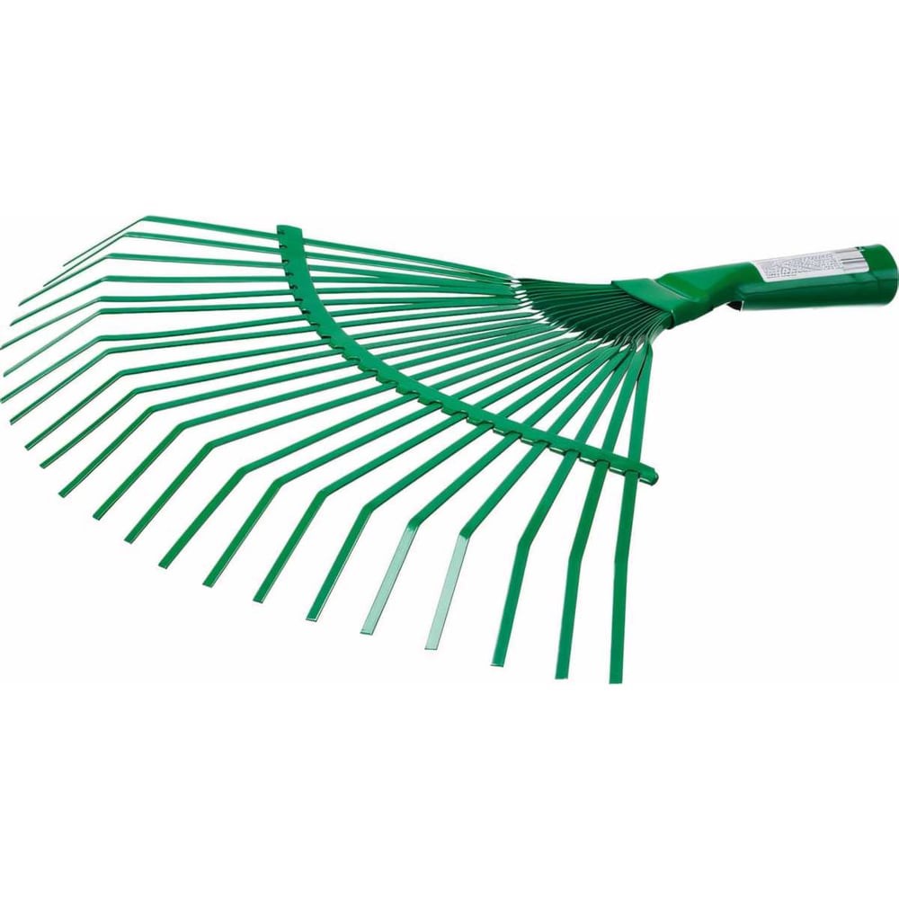 Веерные пластинчатые грабли без черенка РОСТОК 385x450 мм 39621_z01 используются для уборки сада от опавшей листвы, свежескошенной травы и прочего мусора. Практичны и надежны в эксплуатации. Грабли выполнены из высококачественной стали, устойчивой к деформации. Покрытие порошковой краской обеспечивает защиту от коррозии и долгий срок службы.