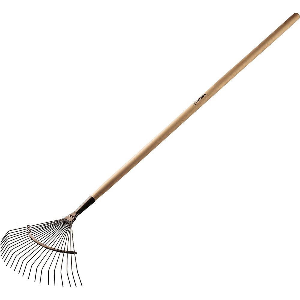 Веерные садовые грабли с деревянным черенком GRINDA 22 круглых зубца, 400х260х1500 мм 39591 служат для уборки скошенной травы, опавших листьев и другого мусора с садово территории. Могут использоваться для выравнивания и рыхления почвы на грядах и клумбах. Пружинистые зубья, согнутые под углом, позволяют работать на неровной поверхности. Грабли укомплектованы деревянным черенком, благодаря чему инструмент полностью готов к использованию.