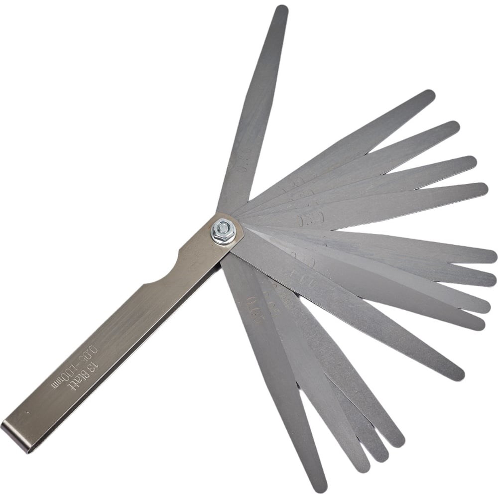 Веерный набор щупов DolleX 13 пр.: 0,05-1,00 мм 100 мм SSP-100 предназначен для измерения зазоров. Инструменты выполнены из прочного металла. Набор отличается долгим сроком службы.
