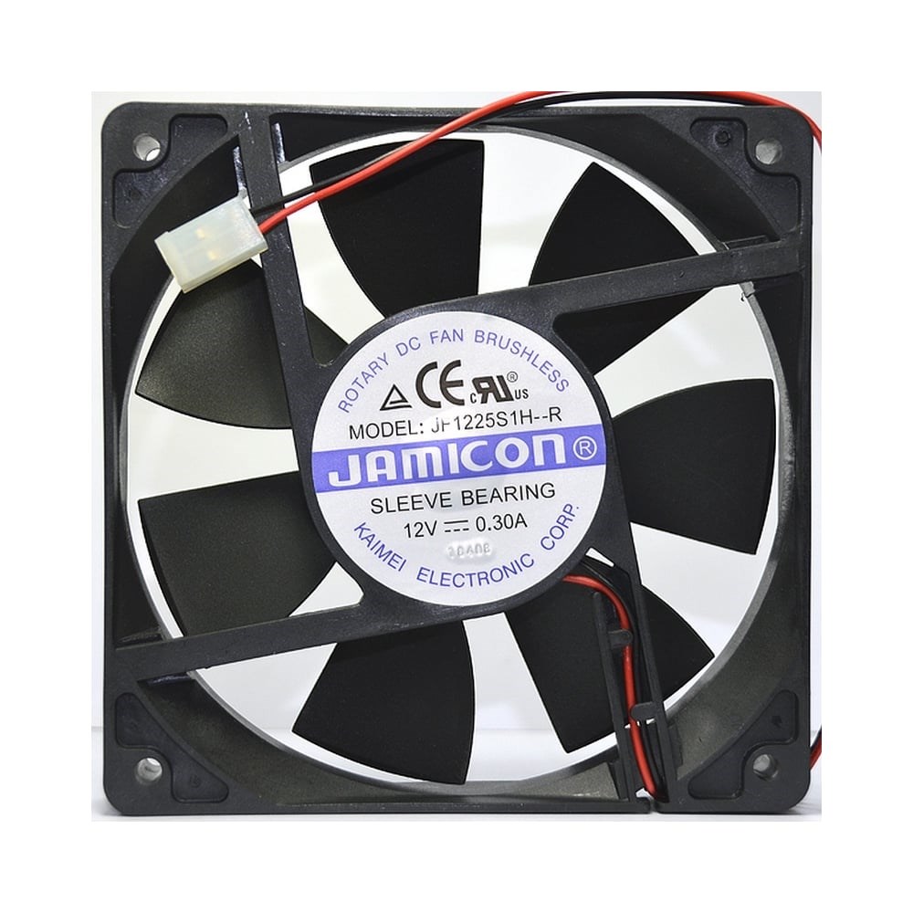 Вентилятор JAMICON JF1225S1H 120х120х25 12В с разъемом 2 конт.MOLEX 5239-2(PHU-2) С00034213 используется для обдува электронных компонентов. Дополнительные технические характеристики: Ток - 0,3 А. Выводы - разъем, 2 контакта. Лопасти - 7 шт. Скорость - 2400 об/мин. Материал рамы - пластик, цвет черный.