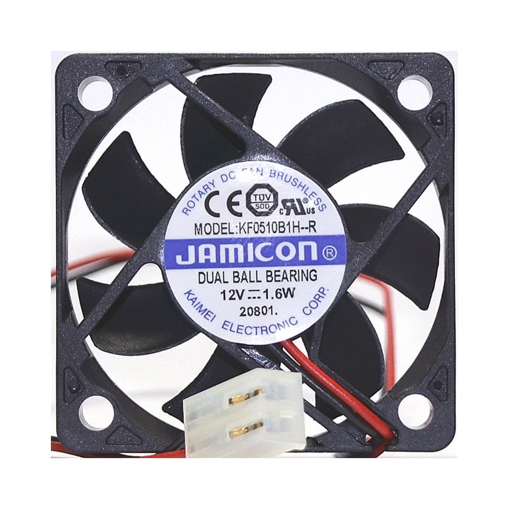 Вентилятор JAMICON KF0510B1H 50х50х10 12В с разъемом 2 конт.MOLEX 5239-2(PHU-2) С00034215 используется для обдува электронных компонентов. Дополнительные технические характеристики: Ток - 0,11 А. Выводы - разъем, 2 контакта. Лопасти - 7 шт. Скорость - 5200 об/мин. Материал рамы - пластик, цвет черный.
