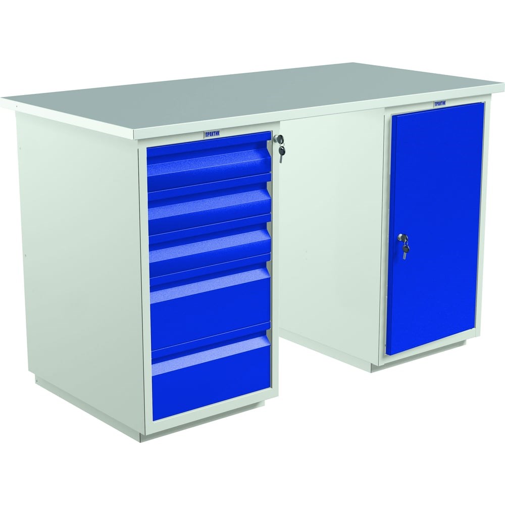 Верстак ПРАКТИК WT140.WD5/WD1.000 К30399856455 предназначается для выполнения различных слесарных работ и обеспечивает максимальное удобство в работе. Прочная и надежная конструкция верстака выдерживает значительные нагрузки. Стол активно используется в образовательных учреждения, в слесарных мастерских, а также на промышленных предприятиях. Столешница надежно защищается от коррозии покрытием из оцинкованного металла толщиной 1.2 мм. Две тумбы позволяют упорядоченно хранить чертежи, инструменты и другие вещи.