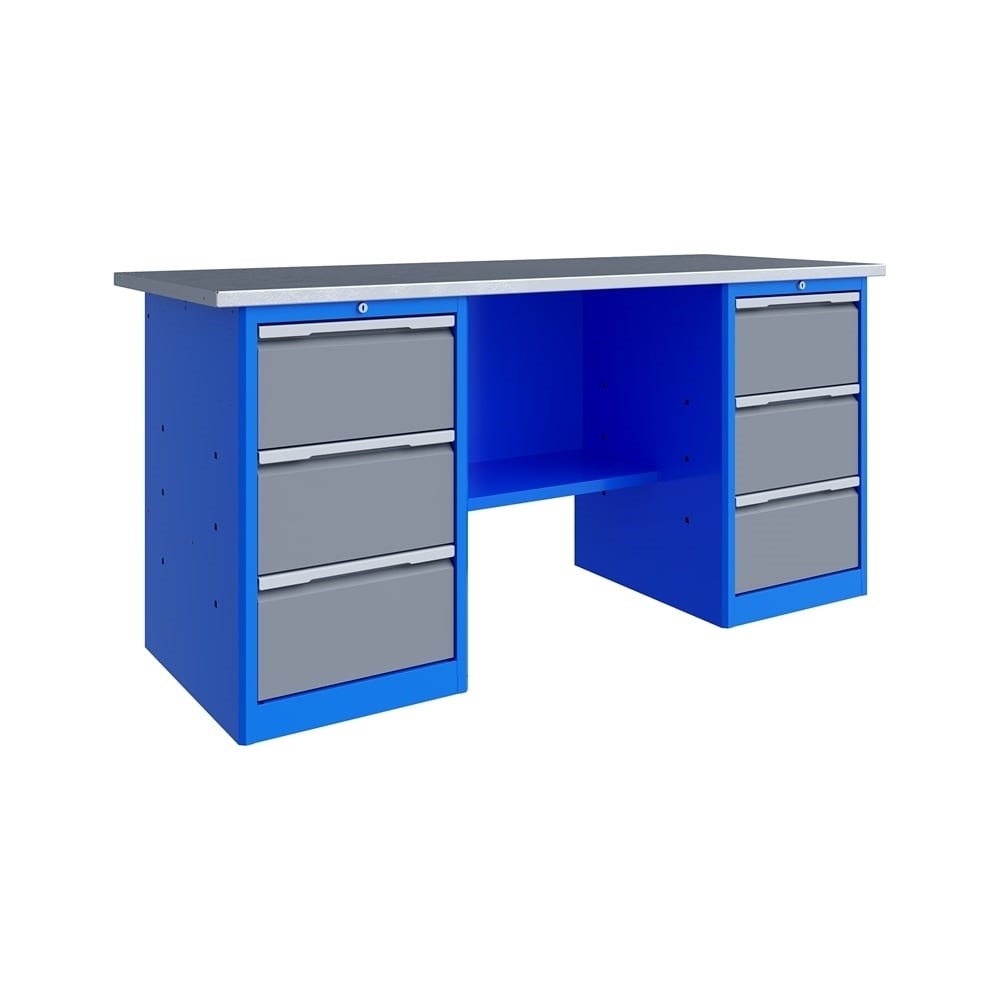 Верстак Верстакофф TNC 181.33.2 125268 представляет собой надежное и высокопрочное рабочее место, на котором можно проводить широкий спектр различных работ. Качественная отделка столешницы и прочное основание обеспечивают длительный срок службы верстака даже в сложных условиях, например, при металлообработке или в местах с повышенной влажностью. Размеры верстака и его оснащение обеспечивают достаточное количество рабочего пространства и места для хранения инструмента. Дополнительно верстак можно оснастить вспомогательными элементами: полками, лотками, ящиками и крючками. Верстак поставляется в разобранном состоянии. Болтовая сборка не требует использования специального инструмента. Основные компоненты тумб и основания верстака сварены, что обеспечивает жесткость конструкции. Преимущество порошкового окрашивания также позволяет избежать царапин и сколов, что сохраняет товарный вид в течение длительного периода времени. НАВЕСКИ НЕ ВХОДЯТ В БАЗОВУЮ КОМПЛЕКТАЦИЮ, их можно приобрести отдельно!