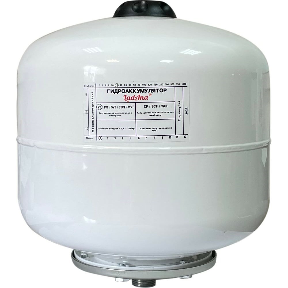 Расширительный бак LadAna 12л вертикальный, белый 110101006/Р предназначен для отопления, холодного и горячего водоснабжения, для поддержания давления в системах водоснабжения, компенсации гидроударов и накопления воды.Сварные швы выполнены с применением оборудования последнего поколения.Соединение колбы выполняется при помощи орбитальной сварки, лазерным швом, что полностью исключает возможность коррозии.Все мембранные баки торговой марки LadAna можно монтировать в любом положенииВсе мембранные баки торговой марки Ladana подходят для работы в системах и для холодного, и для горячего водоснабжения.Габаритные размеры (без упаковки):D= 270 (диаметр, мм)H= 301 (высота, мм)L= 256 (длина колбы, мм)Внимание! Высота изделия указана с учетом ниппеля, фланца, штуцера, ножек и других неотъемлемых частей данной конструкции гидроаккумулятора.