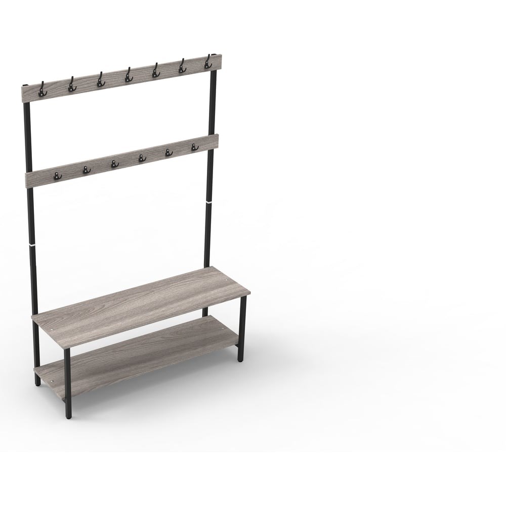 Вешалка ТИТАН МЕТА ВГР-6, каркас черный, ясень светлый шимо 4670026244403 предназначена для размещения верхней одежды. Предусмотрена полка для обуви. Стойки изготовлены из профильной трубы 25х25, толщина стенки 1,2 мм. Покрытие порошково полимерное. Изделие поставляется в разобранном виде.