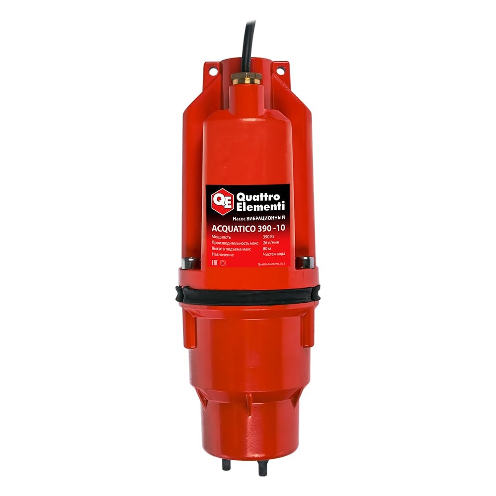 Вибрационный насос QUATTRO ELEMENTI Acquatico 390-10 кабель 10 м 910-362 прост в установке и не требует обслуживания. Обладает высокой мощностью и производительностью. Используется для перекачивания воды из колодцев и скважин диаметром более 120 мм. Погружает на глубину до 2 м. Расстояние до дна колодца не должно быть менее 0.5 м.