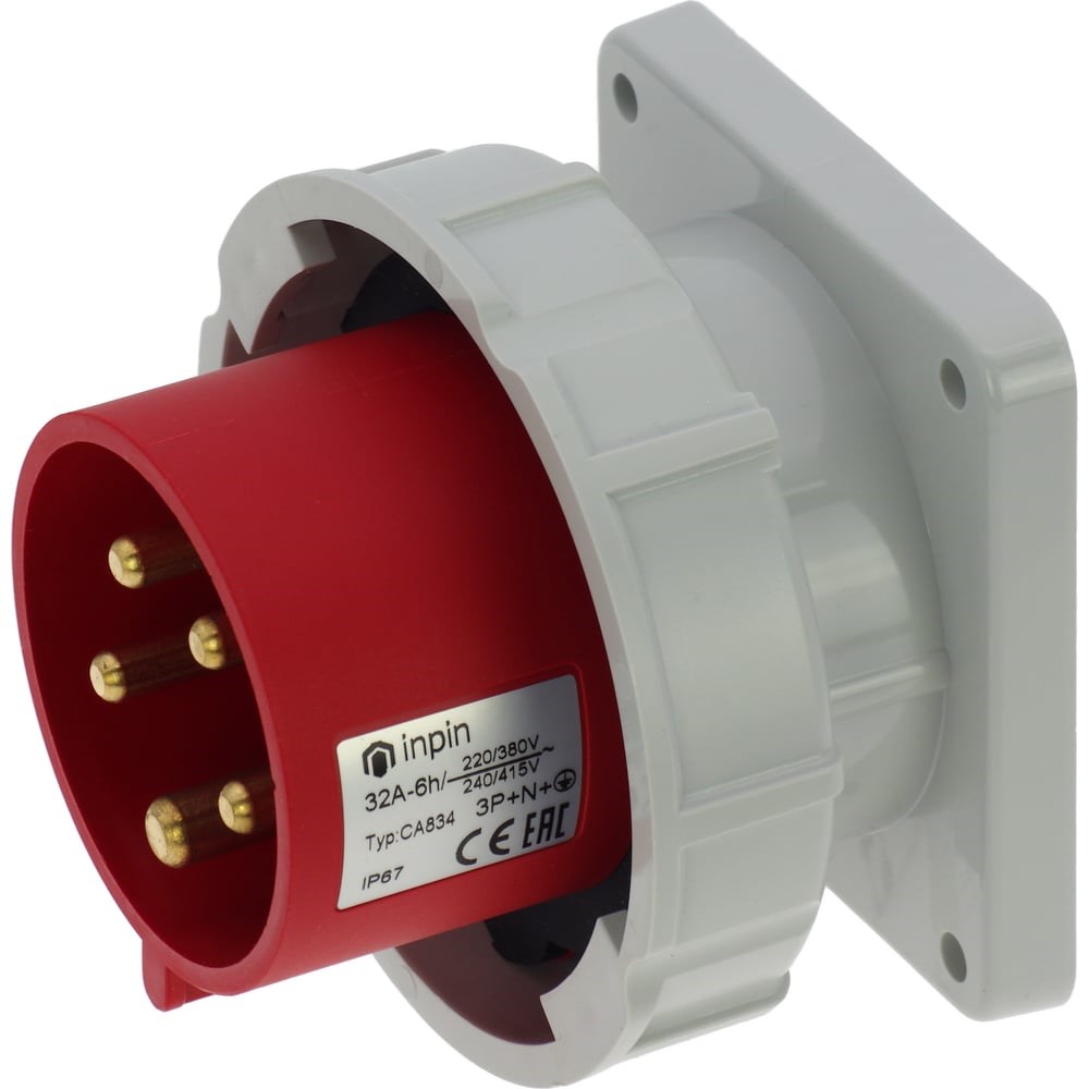 Встраиваемая вилка INPIN 32A/400V/3P+N+E/IP67, фланец 86x86 CA834 адаптирована для промышленности, добывающих и перерабатывающих предприятий, а также подходит для эксплуатации в неблагоприятных условиях. Разъемы CEE отINPIN - это качество и безопасность, удовлетворяющие всем требованиям стандарта IEC 60309-1/2. INPIN - это надежная конструкция, высокая износостойкость и ударопрочность. Контакты соединителей изготавливаются из латуни, корпуса из высококачественных полимеров - полиамида, поликарбоната иABS. Гарантия надежности и долговечности в эксплуатации. Широкий выбор разъемовINPINспособен закрыть любые потребности и запросы клиентов. Ассортимент продукции включает настенные, встраиваемые, кабельные розетки и вилки на токи от 16A до 400A, имеющих высокую степень защиты от пыли и влаги IP44 - IP67.