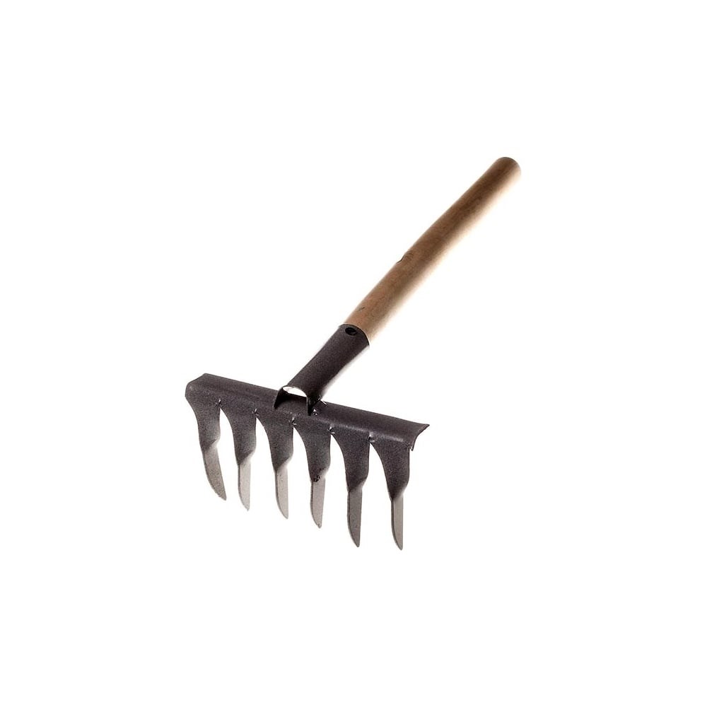 Грабли витые 6-ти зубцовые с деревянным черенком, подойдут для обработки посадок в контейнерах, маленьких узких грядках, клумб и альпинариев.Грабли с витыми зубцами подходят для уборки бумажного мусора, листьев и скошенной сухой травы с полутвердой и твёрдой поверхности.Можно использовать для рыхления и аэрации почвы на грядках и клумбах.Металлическая рабочая часть покрыта порошковой краской, что предохраняет изделие от коррозии и продлевает срок эксплуатации.Внимание! Данное изделие поставляется в сборе с деревянным черенком 370мм. Поставщик оставляет за собой право менять цвет изделия.